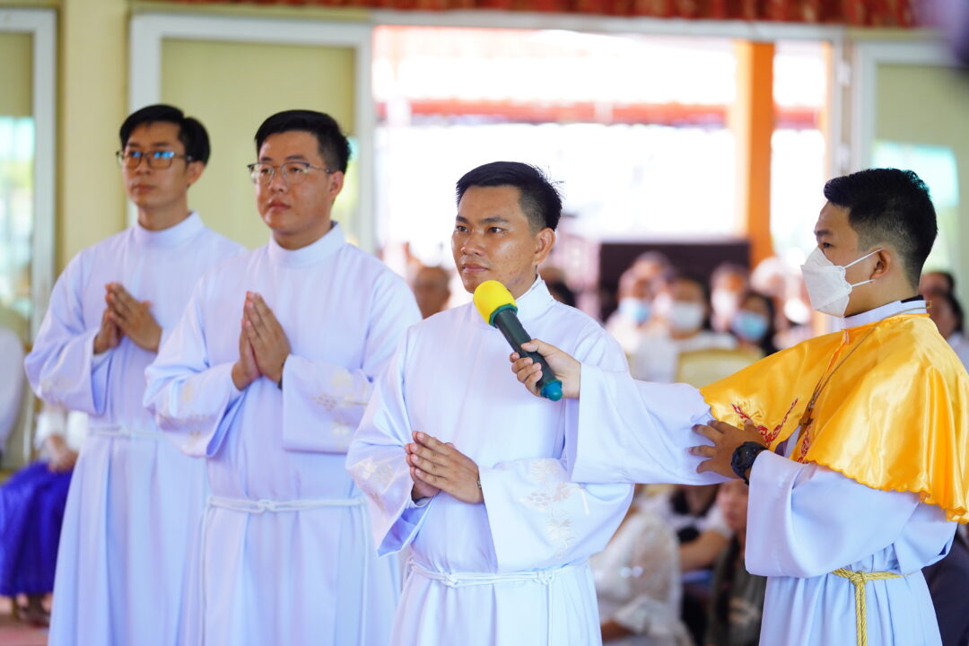 បេក្ខជនទាំងបីរូបមានលោកយ៉ូហានបាទីស្ត វី សំណាង លោកអន់តូនី ថៃរតនៈ(ប៊ុនលី) និងលោក ប៉ូល វិន កាន់ បានឆ្លើយតបនឹងសំណួរលោកអភិបាលអូលីវីយ៉េ បញ្ជាក់អំពីជំហររបស់ពួកគាត់ក្នុងកិច្ចការបម្រើព្រះជាម្ចាស់ក្នុងនាមជាអ្នកបួស។