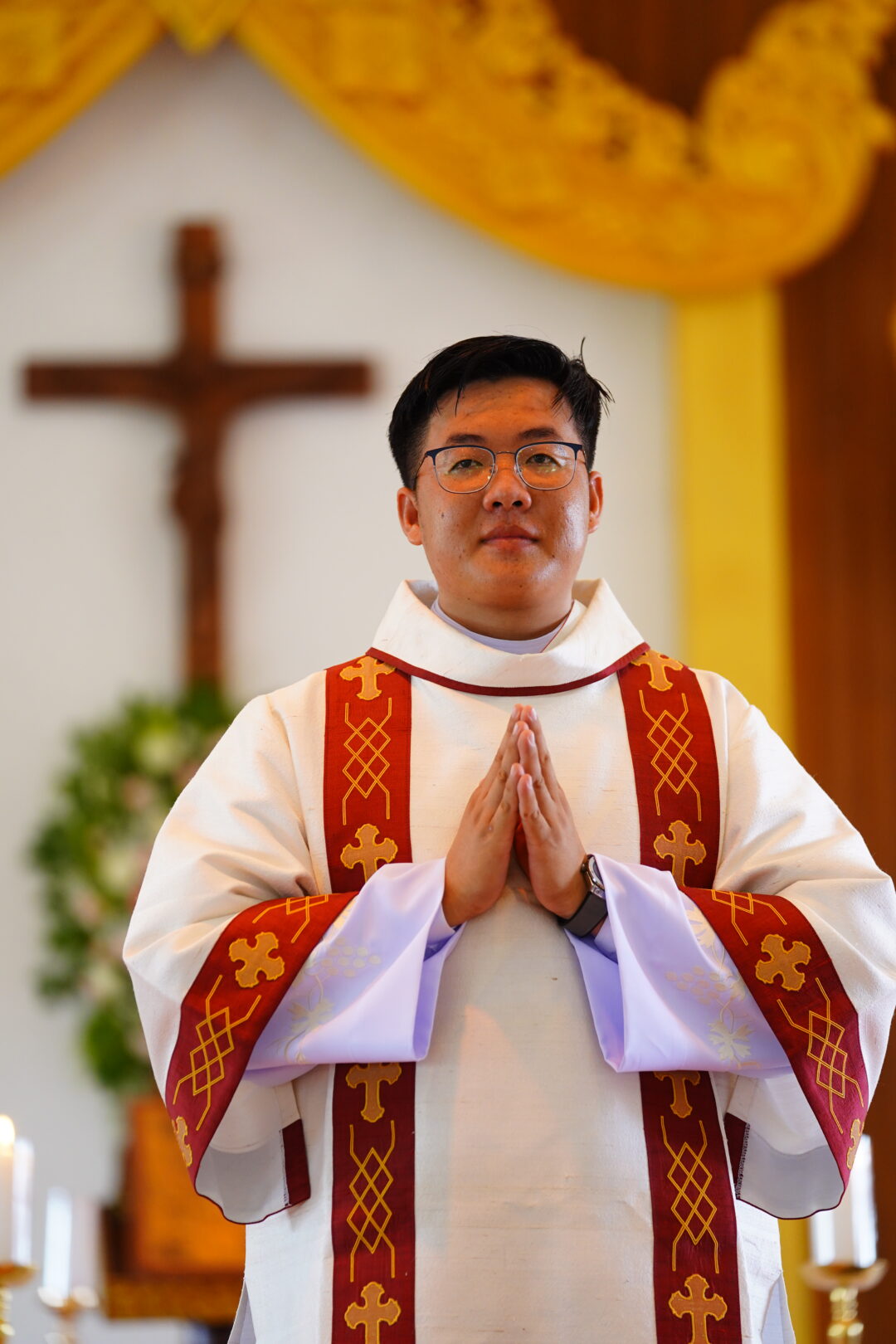 បន្ទាប់មកលោកអភិបាលបានទ្រាបដៃលើក្បាលបេក្ខជនម្នាក់ៗ និងអធិដ្ឋានសូមព្រះជាម្ចាស់ប្រសិទ្ធិពរ និងចាត់ព្រះវិញ្ញាណដ៏វិសុទ្ធយាងមកសណ្ឋិតលើលោកឧបដ្ឋាកទាំងបីរូបឱ្យបានទៅជាអ្នកបម្រើតុសក្ការៈ និងអាចបំពេញមុខងារជាឧបដ្ឋាកយ៉ាងសមរម្យ។