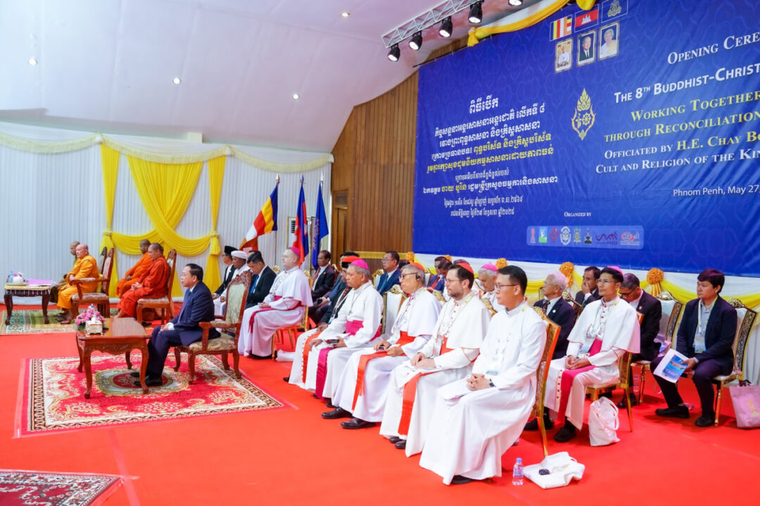 ព្រះសហគមន៍កាតូលិកភូមិភាគភ្នំពេញនៅកម្ពុជា បានរៀបចំកិច្ចសន្ទនាអន្តរសាសនាអន្តរជាតិលើកទី៨ រវាងព្រះពុទ្ធសាសនានិងគ្រីស្តសាសនា ក្រោមប្រធានបទ «ពុទ្ធបរិស័ទនិងគ្រីស្តបរិស័ទរួមគ្នារក្សាសុខដុមនីយកម្មសាសនាដោយភាពធន់» ក្រោមអធិបតីភាពរបស់ឯកឧត្តមបណ្ឌិត ចាយ បូរិន រដ្ឋមន្ត្រីក្រសួងធម្មការនិងសាសនា លោកកាឌីណាល់ចក យ៉ាកុប កូវ៉ាកាដ (Cardinal George Jacob Koovakad) រដ្ឋមន្ត្រីក្រសួងកិច្ចសន្ទនាអន្តរសាសនានៃបុរីវ៉ាទីកង់ រួមនិងតំណាងសម្តេចសង្ឃទាំងពីរគណៈនៅក្នុងប្រទេសកម្ពុជា លោកអគ្គអភិបាល អភិបាល បូជាចារ្យ ភ្ញៀវជាតិនិងអន្តរជាតិ តំណាងសាសនានានា គ្រីស្តបរិស័ទ និងពុទ្ធបរិស័ទប្រមាណជិត២០០នាក់នាព្រឹកថ្ងៃទី២៧ ខែឧសភានេះ។