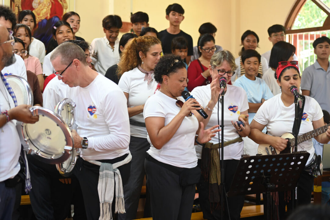 និងភ្ញៀវមកពី Puerto Rico ដែលចូលរួមលេងភ្លេង ច្រៀងក្នុងអភិបូជា ក្រោមអធិបតីភាពលោកអភិបាល ទេព ច័ន្ទពិសិដ្ឋ (អេនរីគេ) អភិបាលព្រះសហគមន៍កាតូលិកភូមិភាគបាត់ដំបង ចូលរួមថ្វាយអភិបូជានៅព្រះសហគមន៍បាត់ដំបង ។