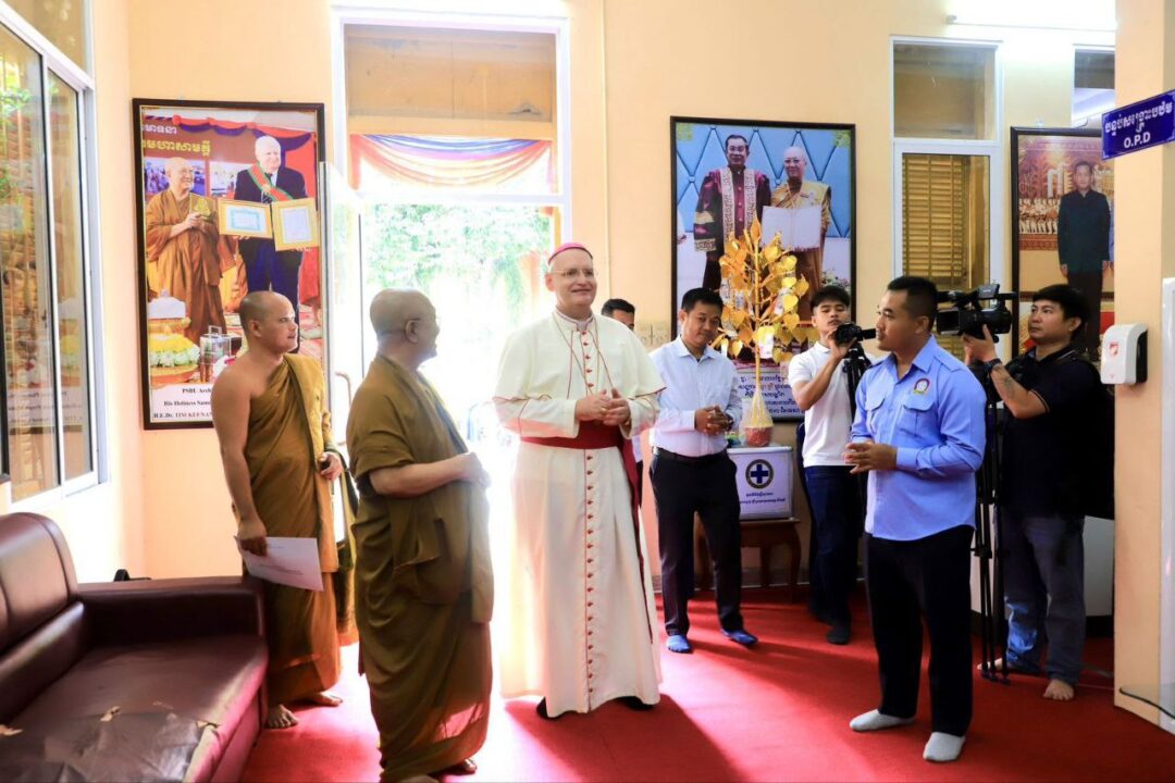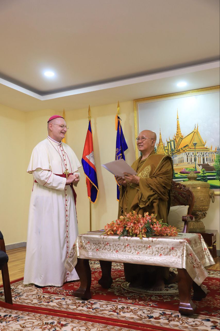 ភ្នំពេញ៖ នៅព្រឹកថ្ងៃទី ១៥ ខែសីហា ឆ្នាំ ២០២៥ នេះ លោកអភិបាល អូលីវីយ៉េ ជ្មីតហស្លេ អភិបាលព្រះសហគមន៍កាតូលិកភូមិភាគភ្នំពេញ បានចូលថ្វាយបង្គំគាល់ សម្តេចព្រះអភិសិរីសុគន្ធាមហាសង្ឃរាជាធិបតី កិត្តិឧទ្ទេសបណ្ឌិត បួរ គ្រី សម្តេចព្រះមហាសង្ឃរាជ នៃគណៈធម្មយុត្តិកនិកាយនៃព្រះរាជាណាចក្រកម្ពុជា នៅពុទ្ធិកសាកលវិទ្យាល័យព្រះសីហមុនីរាជា រាជធានីភ្នំពេញ។ គោលបំណងនៃការចូលគាល់នេះ គឺដើម្បីអារាធនាយាងសម្តេចចូលរួមជា អធិបតីកិត្តិយស ក្នុងពិធីបុណ្យអគ្គសញ្ញាតែងតាំងលោកអភិបាល សិលា សួន ហង្សលី ជាអភិបាលឧបត្ថម្ភកៈនៃព្រះសហគមន៍កាតូលិកភូមិភាគភ្នំពេញ។ នៅក្នុងឱកាសនោះ លោកអភិបាល អូលីវីយ៉េ បានទូលថ្វាយសម្តេចថា ថ្មីៗនេះ សម្តេចប៉ាប ឡេអូ ១៤ (Leo XIV) បានជ្រើសតាំងកូនខ្មែរមួយរូបជាអភិបាលឧបត្ថម្ភកៈ ដែលនឹងអាចបន្តភារកិច្ចជាអភិបាលព្រះសហគមន៍កាតូលិកភូមិភាគភ្នំពេញ នៅពេលលោកចូលនិវត្តន៍។ លោកអភិបាលអូលីវីយ៉េក៏បានរំលឹកពីប្រវត្តិសាស្ត្រសំខាន់ថា ព្រឹត្តិការណ៍នេះកើតឡើង ៥០ ឆ្នាំបន្ទាប់ពីសម្តេចប៉ាបបានតែងតាំង លោកយ៉ូសែប ឆ្មារ សាឡាស់ ជាអភិបាលឧបត្ថម្ភកៈព្រះសហគមន៍ភូមិភាគភ្នំពេញ តែប៉ុន្មានថ្ងៃមុនរបបខ្មែរក្រហមកាន់កាប់រាជធានីភ្នំពេញ និងប្រទេសកម្ពុជាទាំងមូល។ គួរឲ្យសោកស្តាយ លោកអភិបាលយ៉ូសែប ឆ្មារ សាឡាស់ ត្រូវបានជម្លៀសទៅដល់ស្រុកតាំងគោក ហើយត្រូវបង្ខំឱ្យធ្វើការធ្ងន់ រហូតទទួលមរណភាពក្នុងឆ្នាំ១៩៧៧។ ជាមួយគ្នានេះ លោកអភិបាល អូលីវីយ៉េ ក៏បានលើកឡើងពីទំនាក់ទំនងដ៏ល្អរវាងព្រះពុទ្ធសាសនា និងព្រះសហគមន៍កាតូលិក ដែលបានរស់នៅជាមួយគ្នាប្រកបដោយភាពសុខដុមរមនា។ ជាក់ស្តែងកាលពីខែឧសភា ឆ្នាំ២០២៥ កន្លងទៅ បានប្រារព្ធកិច្ចសន្ទនាអន្តរសាសនាអន្តរជាតិ លើកទី៨ រវាងព្រះពុទ្ធសាសនា និងគ្រីស្តសាសនា។ លោកក៏បានទូលថ្វាយសម្តេចព្រះមហាសង្ឃរាជ អំពីការអធិដ្ឋាន រួមគ្នា សម្រាប់វិញ្ញាណក្ខន្ធ វីរៈកងទ័ពកម្ពុជាដែលពលី និងសុំសន្តិភាពនៅតាមព្រំដែនកម្ពុជា-ថៃ ផងដែរ។ ពិធីបុណ្យអគ្គសញ្ញាតែងតាំងលោកអភិបាល សិលា សួន ហង្សលី នឹងប្រព្រឹត្តទៅនៅថ្ងៃទី ៦ ខែកញ្ញា ឆ្នាំ ២០២៥ នៅមជ្ឈមណ្ឌលសកម្មភាពព្រះសហគមន៍កាតូលិកភូមិភាគភ្នំពេញ(ភ្នំពេញថ្មី)។ ការយាង សម្តេច ព្រះមហាសង្ឃរាជចូលរួមជាអធិបតីកិត្តិយស បង្ហាញពីការទទួលស្គាល់តួនាទីដ៏សំខាន់របស់ព្រះពុទ្ធសាសនាដែលជាសាសនារដ្ឋ ក៏ដូចជាការលើកកម្ពស់សាមគ្គីភាព និងការយោគយល់គ្នាទៅវិញទៅមករវាងប្រជាជនកម្ពុជាគ្រប់ជំនឿសាសនា។ ជាការឆ្លើយតប សម្តេចព្រះមហាសង្ឃរាជ បូរ គ្រី បានបង្ហាញព្រះទ័យទទួលស្វាគមន៍យ៉ាងកក់ក្តៅ និងរំលឹកដល់សកម្មភាពល្អៗជាច្រើនដែលព្រះអង្គធ្លាប់មានជាមួយបព្វជិតនៃព្រះសហគមន៍កាតូលិក។ ព