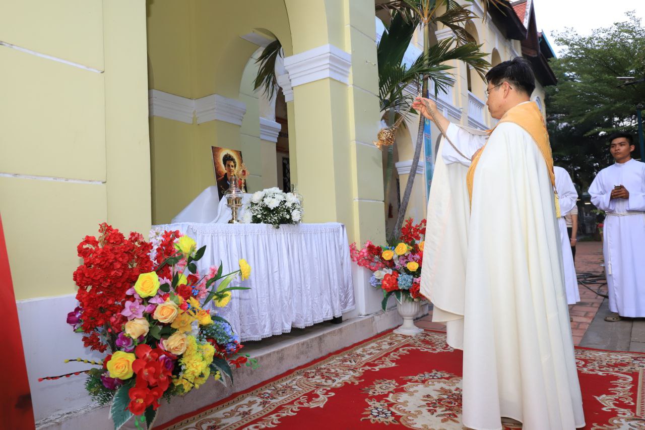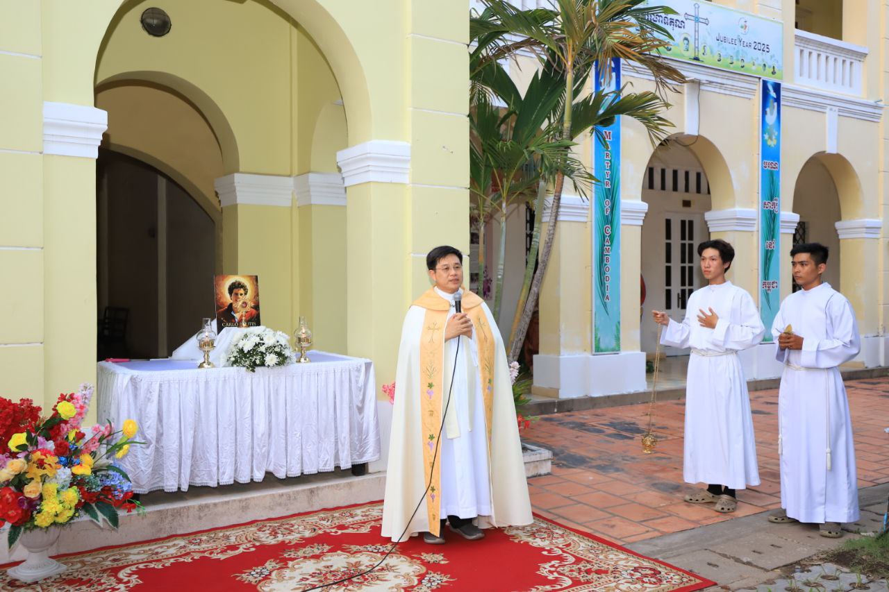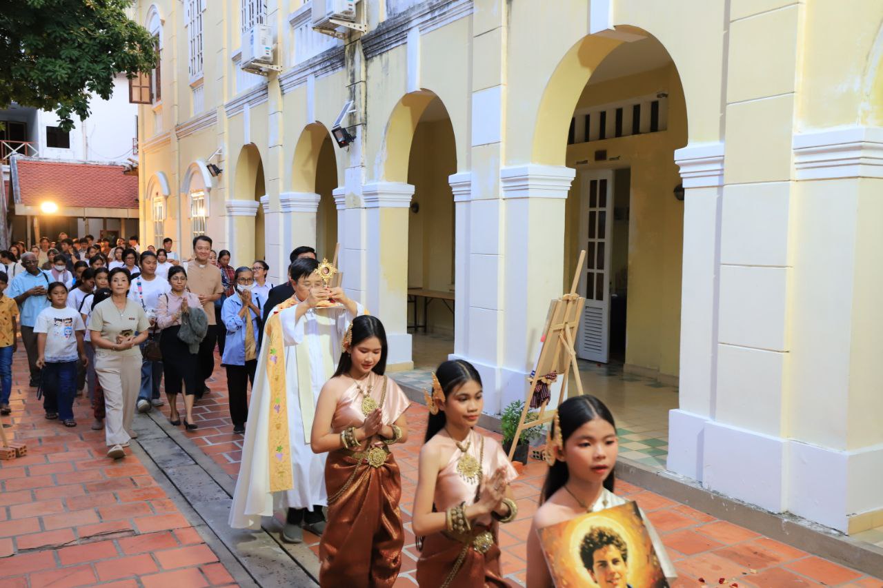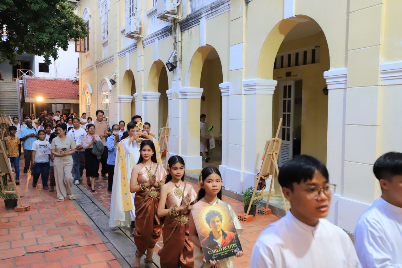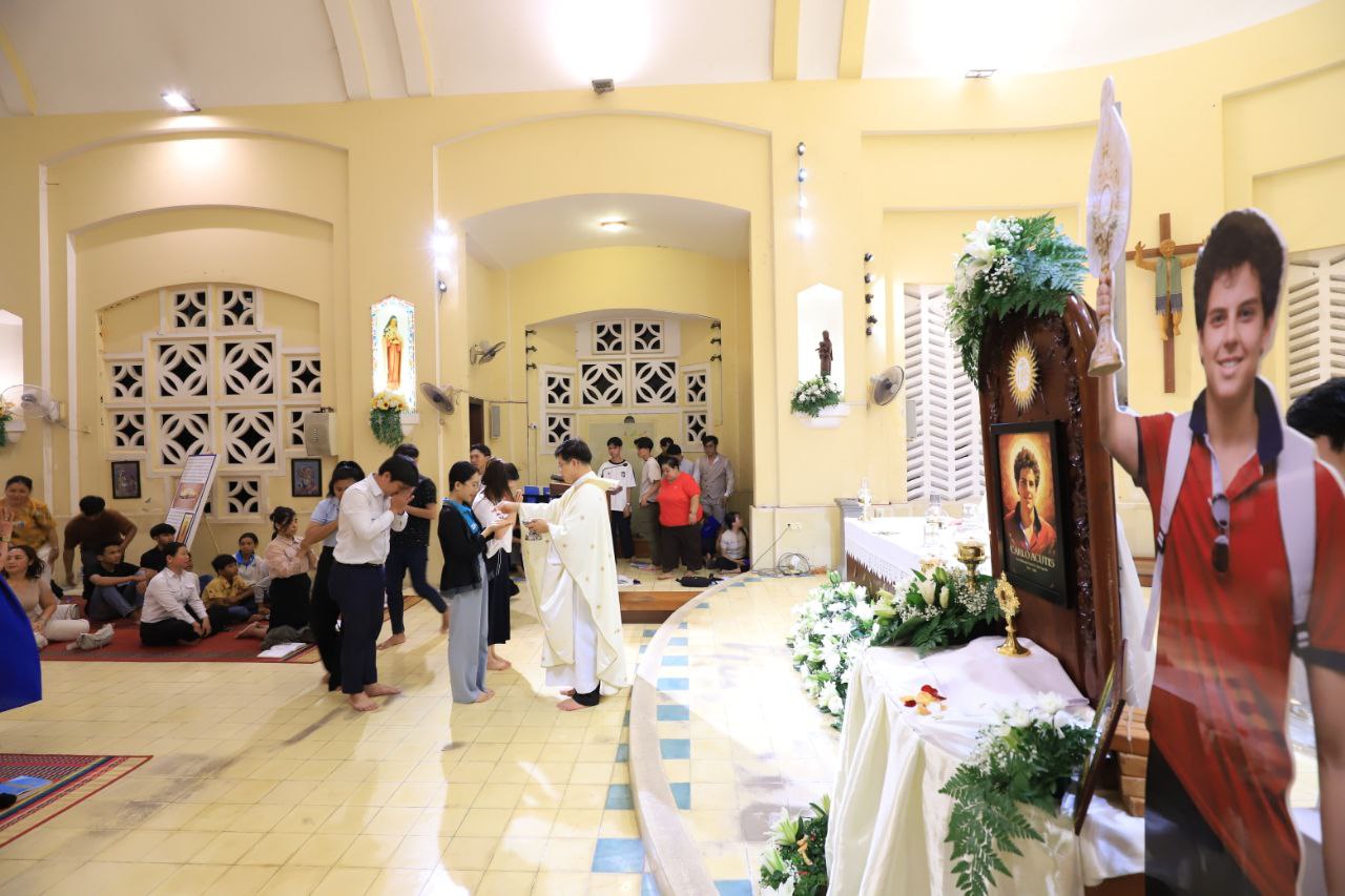 ពិធីទទួលស្វាគមន៍ ដង្ហែរសិរីរឹកធាតុ សន្តកាឡូស អាកូទីស អភិបូជា និងពិធីនមស្សការព្រះកាយព្រះគ្រីស្ត ថ្ងៃសុក្រ ទី១០ ខែតុលា ឆ្នាំ២០២៥ នៅព្រះវិហារសន្តយ៉ូសែប ផ្សាតូច ក្រោមការណែនាំរបស់លោក បូជាចារ្យ ប៉ូល រឿង ឆ័ត្រសិរី