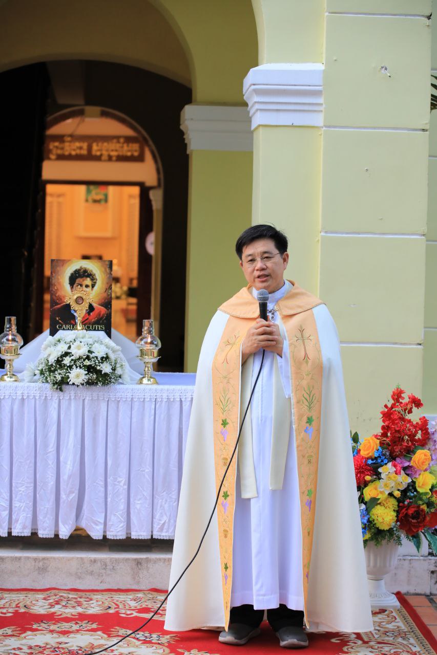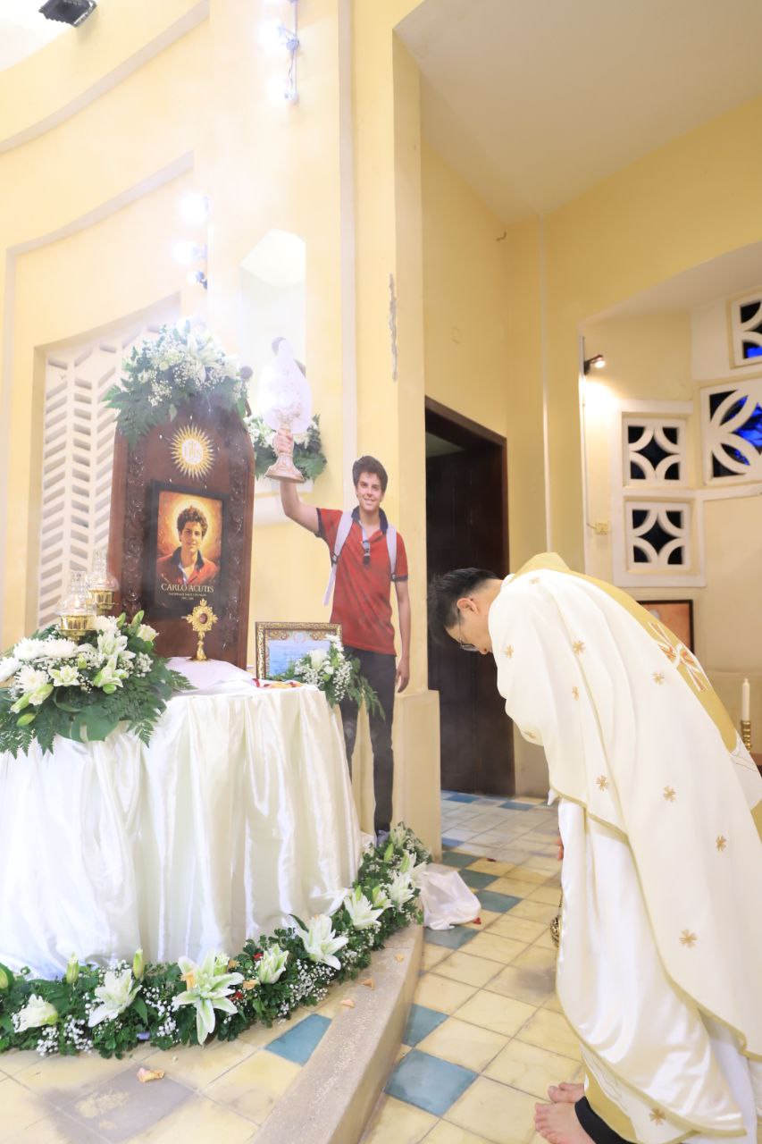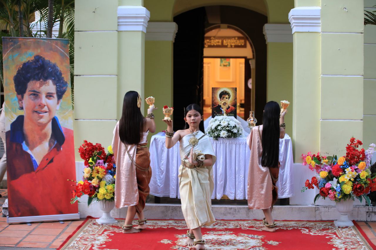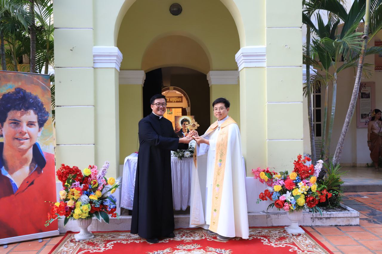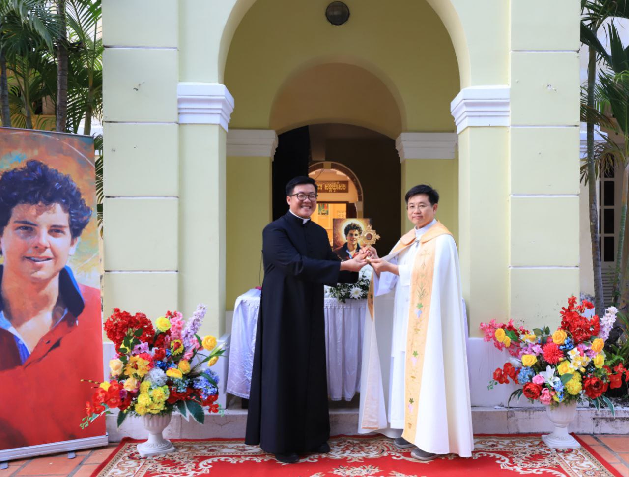 ពិធីទទួលស្វាគមន៍ ដង្ហែរសិរីរឹកធាតុ សន្តកាឡូស អាកូទីស អភិបូជា និងពិធីនមស្សការព្រះកាយព្រះគ្រីស្ត ថ្ងៃសុក្រ ទី១០ ខែតុលា ឆ្នាំ២០២៥ នៅព្រះវិហារសន្តយ៉ូសែប ផ្សាតូច ក្រោមការណែនាំរបស់លោក បូជាចារ្យ ប៉ូល រឿង ឆ័ត្រសិរី