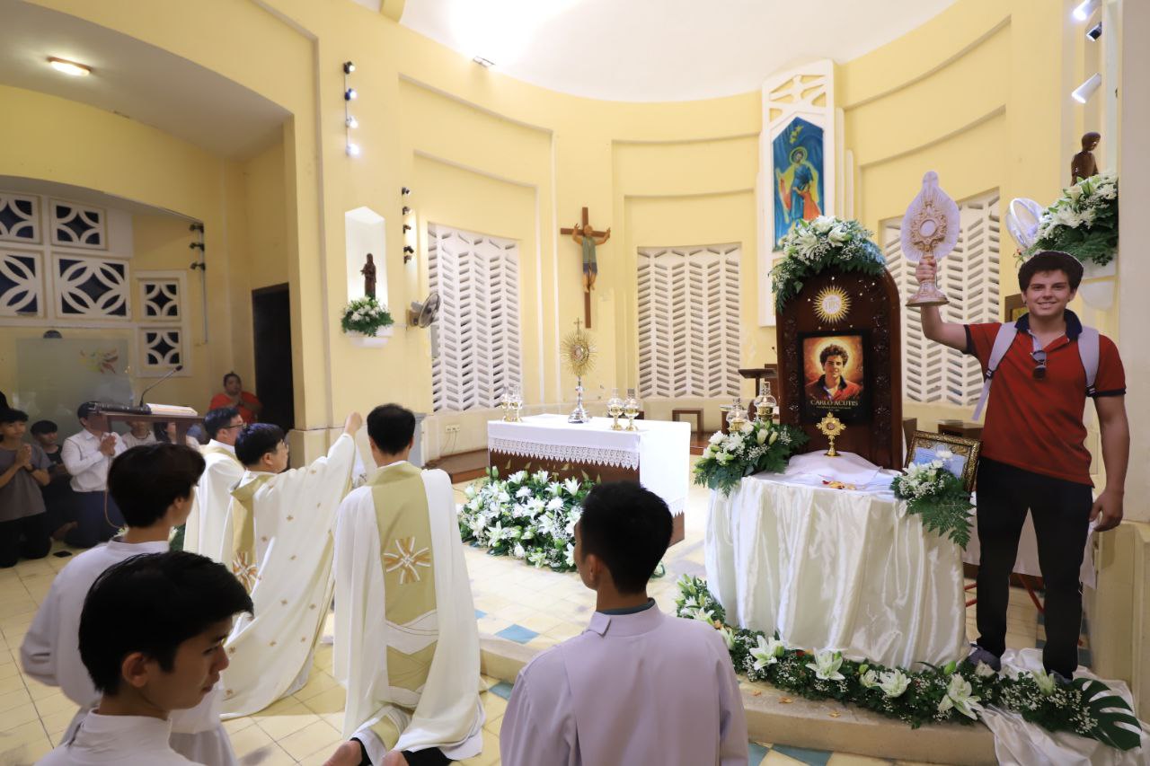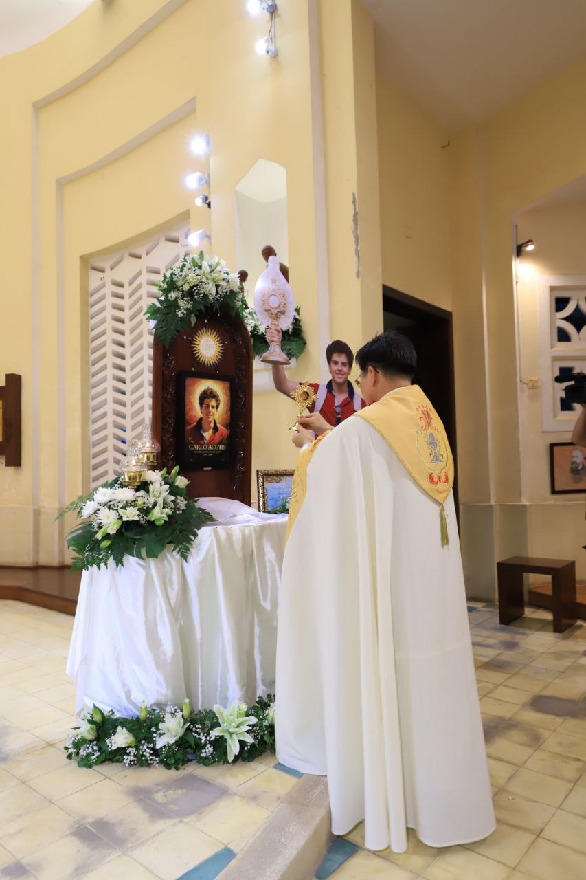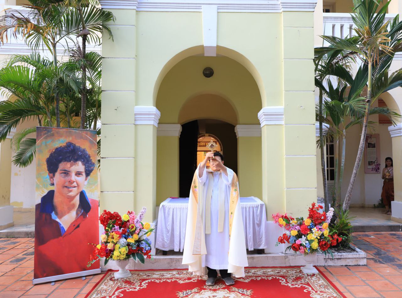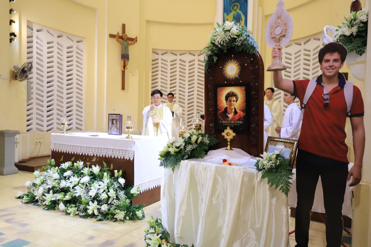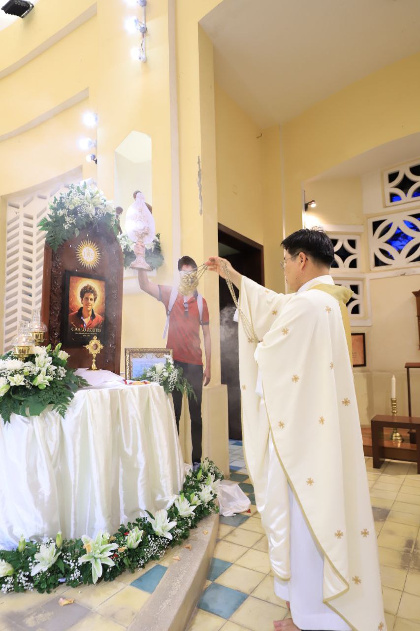 ពិធីទទួលស្វាគមន៍ ដង្ហែរសិរីរឹកធាតុ សន្តកាឡូស អាកូទីស អភិបូជា និងពិធីនមស្សការព្រះកាយព្រះគ្រីស្ត ថ្ងៃសុក្រ ទី១០ ខែតុលា ឆ្នាំ២០២៥ នៅព្រះវិហារសន្តយ៉ូសែប ផ្សាតូច ក្រោមការណែនាំរបស់លោក បូជាចារ្យ ប៉ូល រឿង ឆ័ត្រសិរី