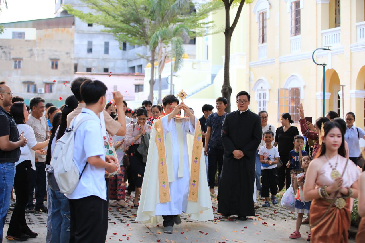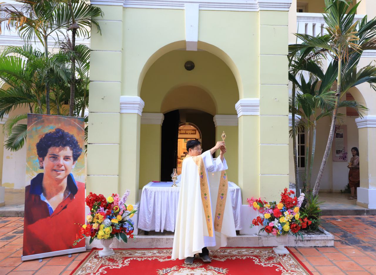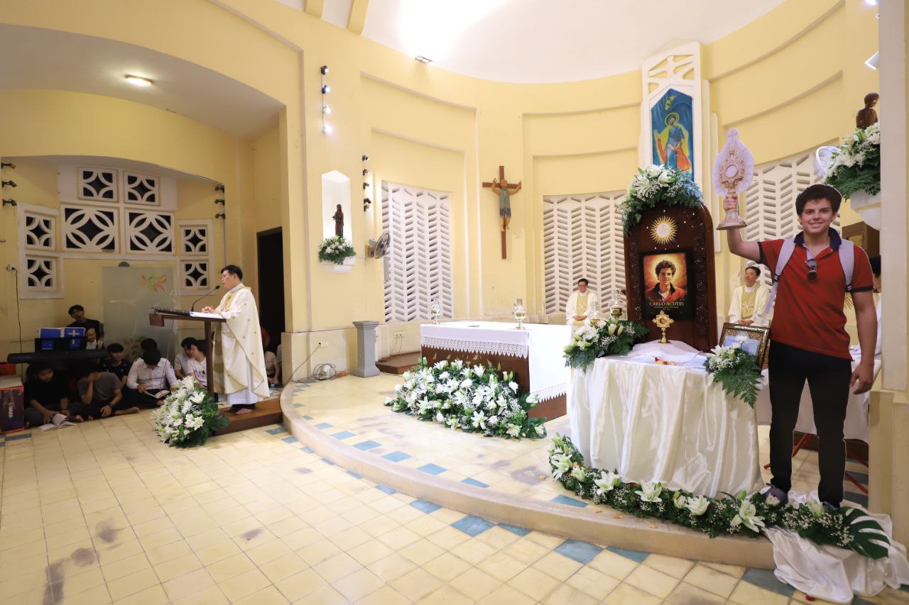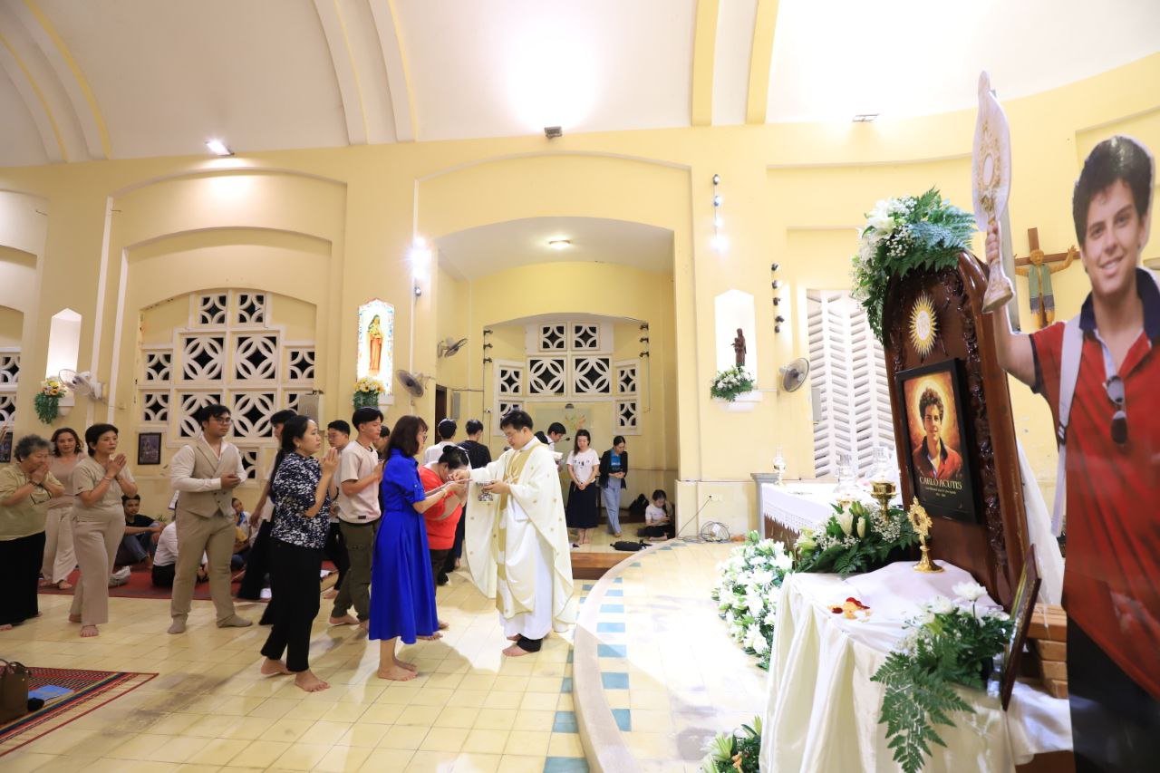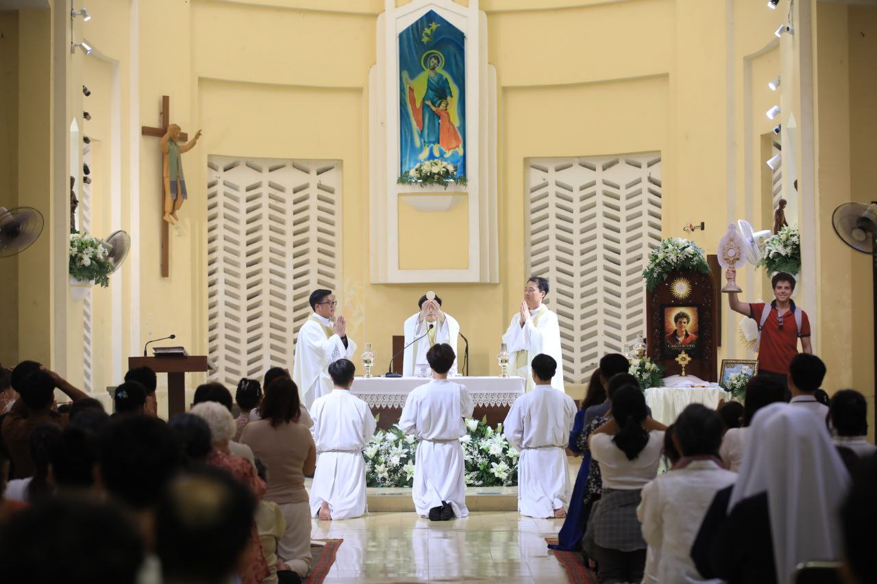 ពិធីទទួលស្វាគមន៍ ដង្ហែរសិរីរឹកធាតុ សន្តកាឡូស អាកូទីស អភិបូជា និងពិធីនមស្សការព្រះកាយព្រះគ្រីស្ត ថ្ងៃសុក្រ ទី១០ ខែតុលា ឆ្នាំ២០២៥ នៅព្រះវិហារសន្តយ៉ូសែប ផ្សាតូច ក្រោមការណែនាំរបស់លោក បូជាចារ្យ ប៉ូល រឿង ឆ័ត្រសិរី