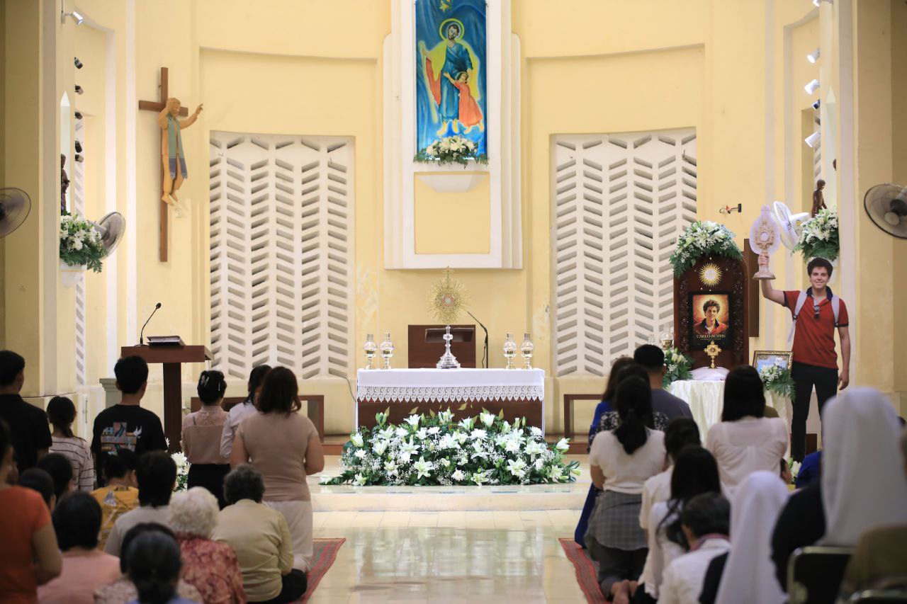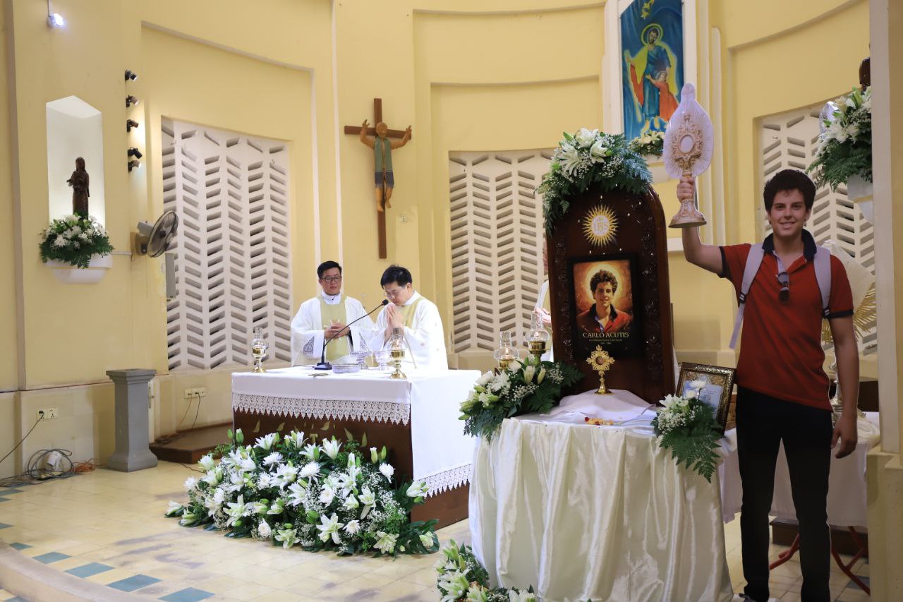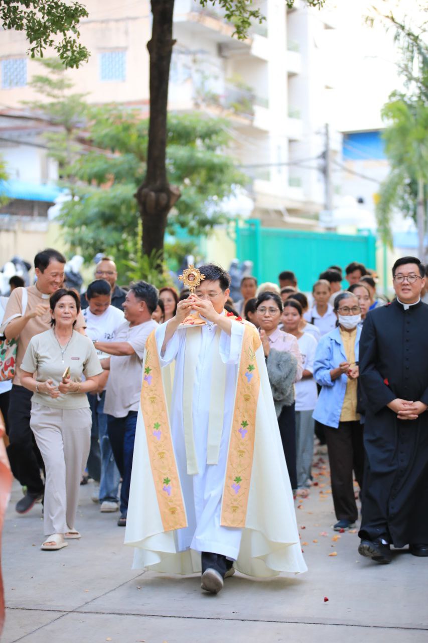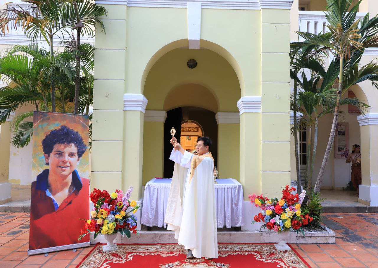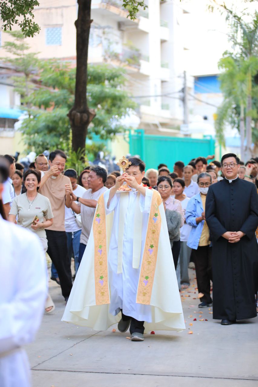 ពិធីទទួលស្វាគមន៍ ដង្ហែរសិរីរឹកធាតុ សន្តកាឡូស អាកូទីស អភិបូជា និងពិធីនមស្សការព្រះកាយព្រះគ្រីស្ត ថ្ងៃសុក្រ ទី១០ ខែតុលា ឆ្នាំ២០២៥ នៅព្រះវិហារសន្តយ៉ូសែប ផ្សាតូច ក្រោមការណែនាំរបស់លោក បូជាចារ្យ ប៉ូល រឿង ឆ័ត្រសិរី