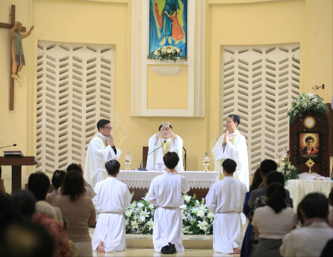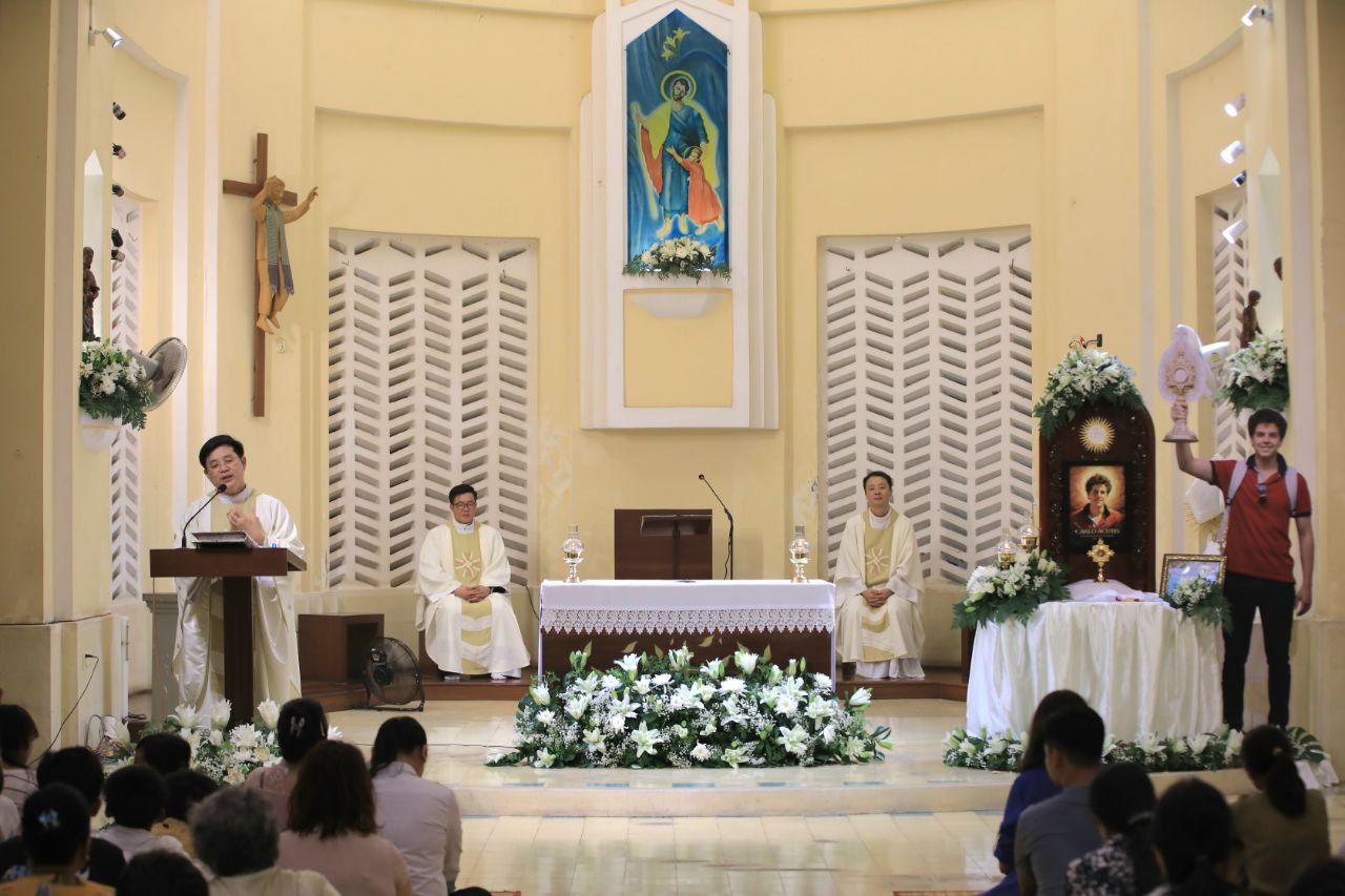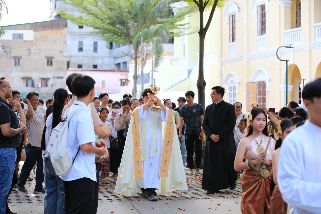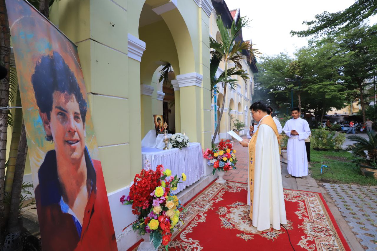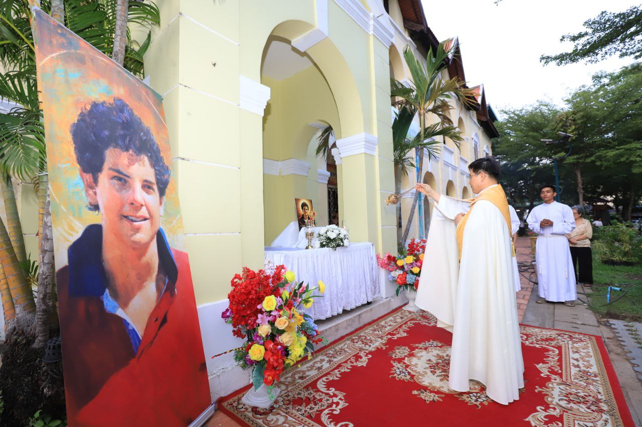 ពិធីទទួលស្វាគមន៍ ដង្ហែរសិរីរឹកធាតុ សន្តកាឡូស អាកូទីស អភិបូជា និងពិធីនមស្សការព្រះកាយព្រះគ្រីស្ត ថ្ងៃសុក្រ ទី១០ ខែតុលា ឆ្នាំ២០២៥ នៅព្រះវិហារសន្តយ៉ូសែប ផ្សាតូច ក្រោមការណែនាំរបស់លោក បូជាចារ្យ ប៉ូល រឿង ឆ័ត្រសិរី