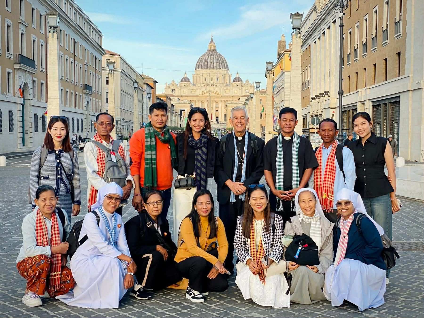 ក្រុមគ្រីស្តបរិស័ទកាតូលិកមួយក្រុមតូចមកពីព្រះសហគមន៍កាតូលិកភូមិភាគបាត់ដំបង បានទទួលពរដ៏វិសេសវិសាល ដោយបានចូលគាល់ដោយផ្ទាល់ជាមួយ សម្តេចប៉ាប ឡេអូ ទី១៤ កាលពីខែតុលា ឆ្នាំ២០២៥ ក្នុងឱកាសនៃ បូជនីយចរ «ឆ្នាំមហាករុណាទិគុណ»។ លោកអភិបាល គីកេ ហ្វីការេដូ អភិបាលព្រះសហគមន៍កាតូលិកភូមិភាគបាត់ដំបង ដែលបានដឹកនាំក្រុមនេះផ្ទាល់ បានរៀបរាប់ថា គ្រានោះគឺជាពេលវេលាពោរពេញដោយ «អំណរសប្បាយ និងសេចក្តីសង្ឃឹមយ៉ាងជ្រាលជ្រៅ» ដែលបានពង្រឹងជំនឿ និងកម្លាំងចិត្តឲ្យយើងជាគ្រីស្តបរិស័ទកម្ពុជាបន្តដំណើរទៅមុខយ៉ាងរឹងមាំ។ ក្រុមបូជនីយចរ ជាគ្រីស្តបរិស័ទខ្មែរនេះមកពីព្រះសហគមន៍ចំណោម ក្នុងភូមិភាគបាត់ដំបង ដែលមាន “ភាពចម្រុះដ៏សម្បូរបែប (mosaic of faith)”។ សមាសភាពក្រុមមានភាពទូលំទូលាយ ដោយមានលោកឪពុក វ៉ាំងសង់ ជាសាសនទូតបារាំង លោកបូជាចារ្យខ្មែ យ៉ូសែប មួង រស់ រួមទាំងគ្រីស្តបរិស័ទដែលមានបទពិសោធន៍ខុសៗគ្នា៖ បងប្អូនដែលបានឆ្លងកាត់របបសង្គ្រាម និងជាសាក្សីនៃការរស់ឡើងវិញនៃព្រះសហគមន៍កាតូលិកនៅកម្ពុជា។ គូស្វាមីភរិយាវ័យក្មេង និងស្ត្រីមានផ្ទៃពោះម្នាក់ ព្រមទាំងដូនជីកាតូលិក ពីក្រុមបងស្រី អ្នកបម្រើដ៏តូចតាច នៃគ្រួសារដ៏វិសុទ្ធ និងក្រុមបងស្រីអ្នកបម្រើសេចក្តីស្រឡាញ់ដ៏និមលរបស់ព្រះនាងម៉ារី។ លោកអភិបាល គីកេ បានបន្តថា លោកបានទូលថ្វាយសម្តេចប៉ាបនូវបំណងចង់ជួបជាក្រុម ហើយប៉ុន្មានថ្ងៃក្រោយមក សម្តេចក៏បានអនុញ្ញាតឲ្យក្រុមចូលគាល់ ជាឯកជន និងក្រៅផ្លូវការ ដោយព្រះហឫទ័យសប្បុរស។ លោកអភិបាលបានបន្តរៀបរាបទៀតថា បទពិសោធន៍ដ៏កម្រនេះ បានបន្សល់ទុកនូវបទពិសោធន៍ដ៏ជ្រាលជ្រៅចំនួនបួនចំណុចដែលដក់ជាប់ក្នុងដួងចិត្តរបស់ម្នាក់ៗ៖ ១. ព្រះសហគមន៍ជាទំនាក់ទំនងបងប្អូន សម្តេចប៉ាបបានស្តាប់ដោយយកចិត្តទុកដាក់បំផុតចំពោះរឿងរ៉ាវពីកម្ពុជា និងបានបង្ហាញពីគំរូនៃព្រះសហគមន៍ដែលអនុវត្តតាម Synodal (ការធ្វើដំណើររួមគ្នា)។ លោកអភិបាល គីកេ បានបញ្ជាក់ថា សម្តេចប៉ាបបានបង្ហាញថា ព្រះសហគមន៍មិនមែនត្រឹមតែជាស្ថាប័នទេ ប៉ុន្តែជាទំនាក់ទំនងភាពជាបងប្អូន និងការរាប់រកគ្នាដោយចិត្តមេត្តា។ ២. ភាពទន់ភ្លន់របស់គង្វាលចំពោះញត្តិសុំសន្តិភាព ទោះបីមានកាលវិភាគមមាញឹកក្តី សម្តេចប៉ាបបានផ្តល់ពេលវេលាដ៏មានតម្លៃ និងកក់ក្តៅដល់ក្រុម ដោយសួរសុខទុក្ខយ៉ាងពិសេសចំពោះស្ត្រីមានផ្ទៃពោះ និងគូស្វាមីភរិយា។ សម្តេចប៉ាបក៏បានស្តាប់ដោយព្រះហឫទ័យទុកដាក់បំផុតចំពោះ ញត្តិសុំសន្តិភាព ជុំវិញជម្លោះព្រំដែនកម្ពុជា-ថៃ ដែលបានប៉ះពាល់ដល់ប្រជាជនជិត ២០០,០០០ នាក់។ ជាមួយគ្នានេះព្រះអង្គក៏បានទទួលដោយក្ដីរំភើបរូបសំណាកព្រះនាងម៉ារីពីកម្ពុជា ដែលជាសញ្ញានៃការរួបរួមដ៏ជ្រាលជ្រៅ។ ៣. ព្រះភក្រ