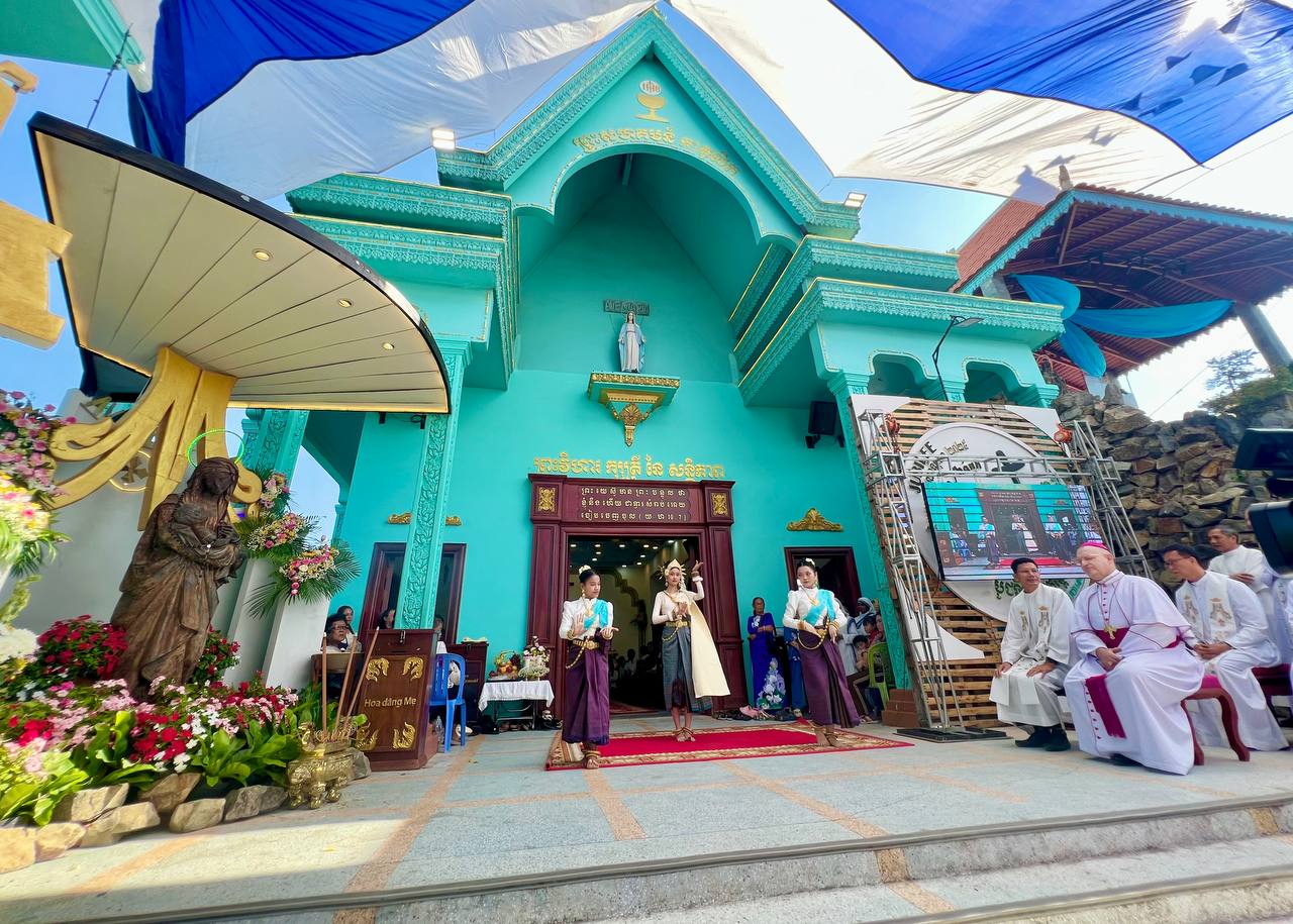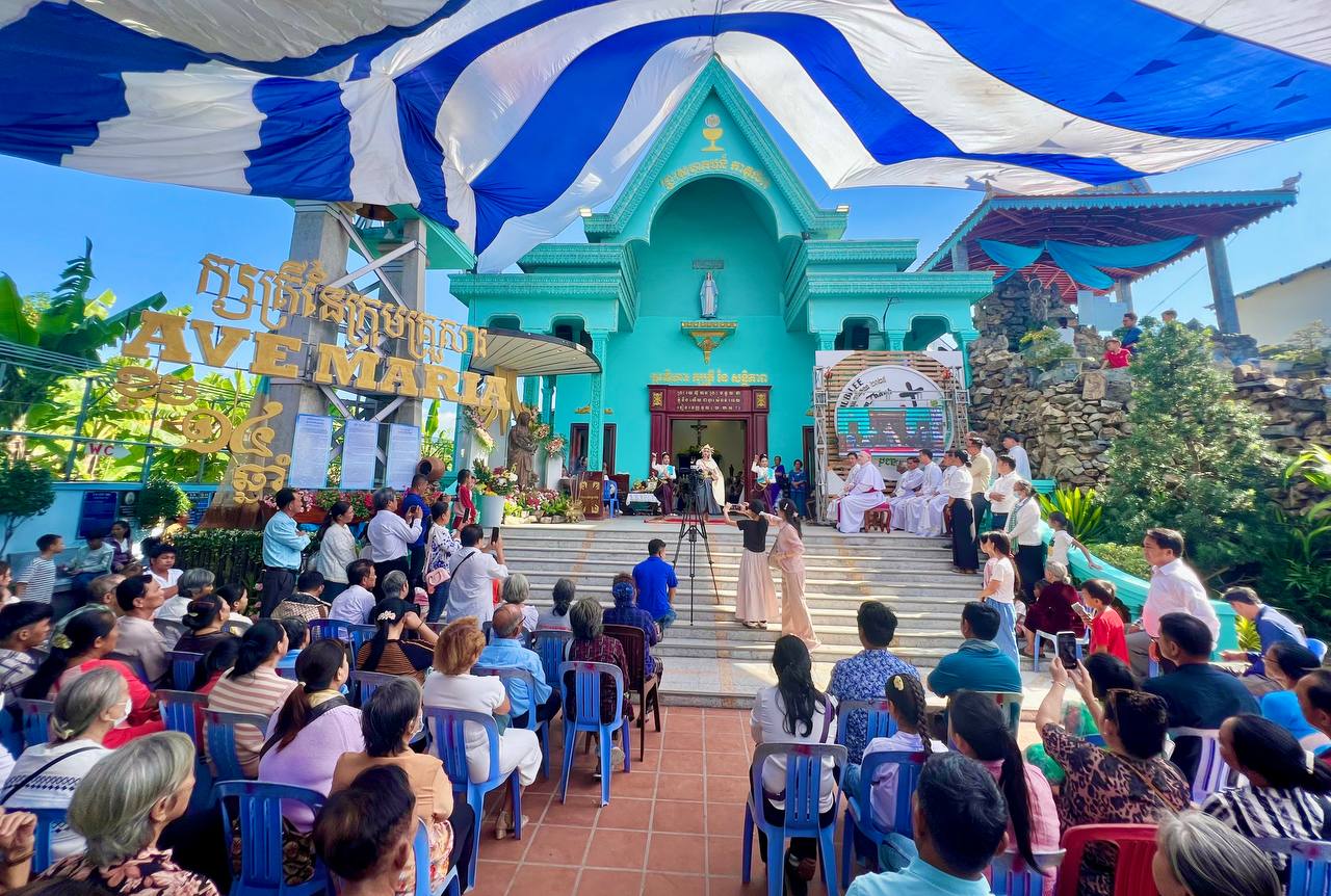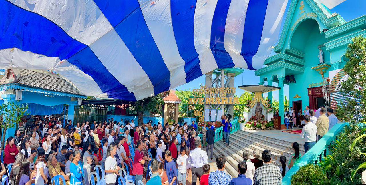 អារិយក្សត្រ៖ កាលពីថ្ងៃសុក្រ ទី១៤ ខែវិច្ឆិកា ឆ្នាំ២០២៥ ព្រះវិហារគ្សត្រីនៃសន្តិភាព អារិយក្សត្រ បានរៀបចំពិធីបុណ្យអរព្រះគុណព្រះជាម្ចាស់ យ៉ាងអធិកអធម ដើម្បីរំលឹកខួប ១៣ ឆ្នាំ នៃការស្រង់រូបសំណាកព្រះនាងម៉ារី នៃក្រុមគ្រួសារ ពីបាតទន្លេមេគង្គ ដោយអ្នកនេសាទម្នាក់។