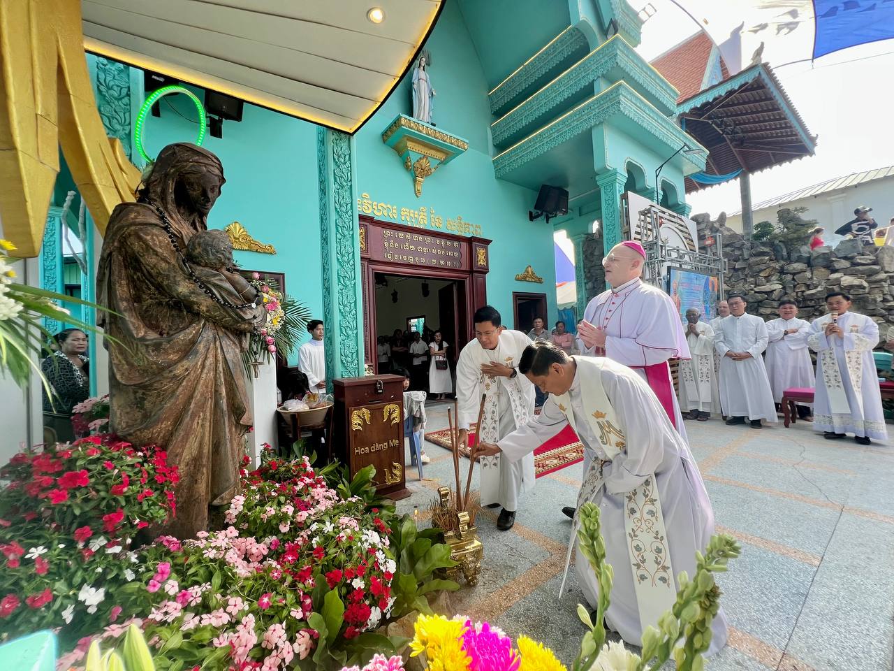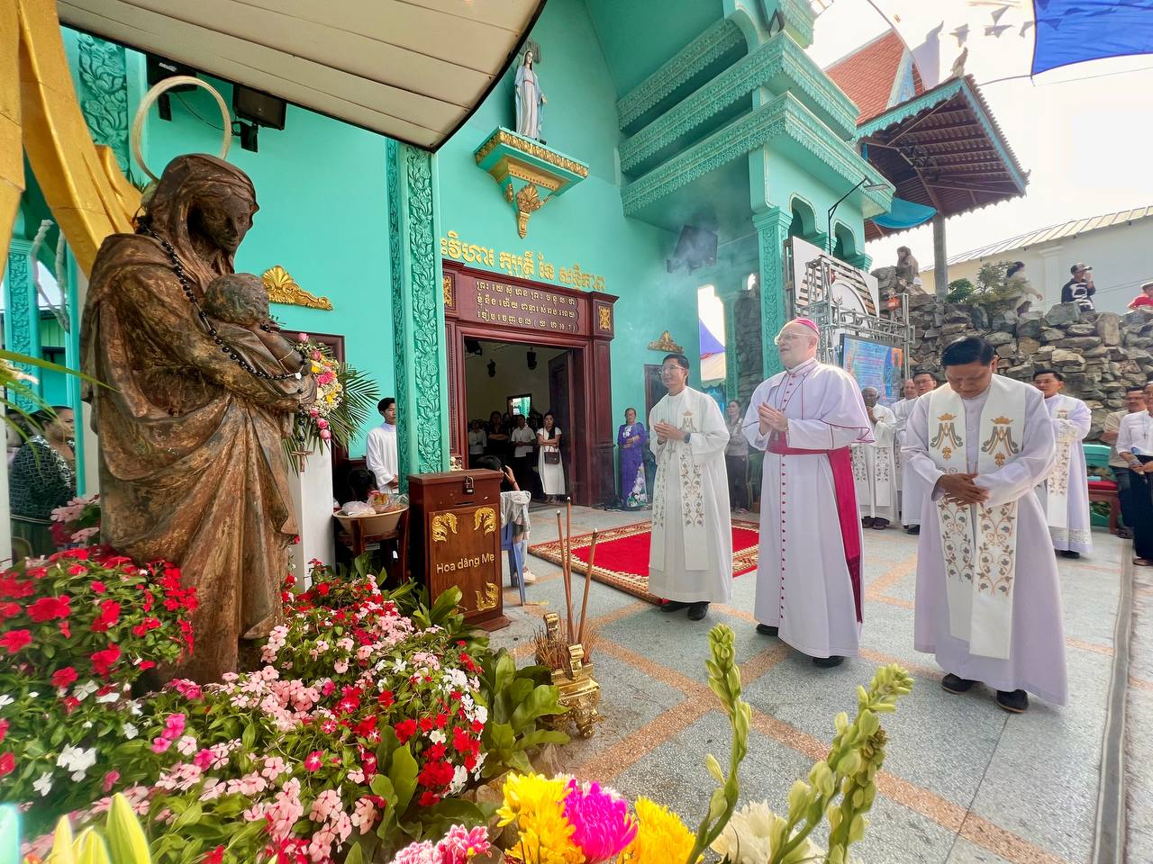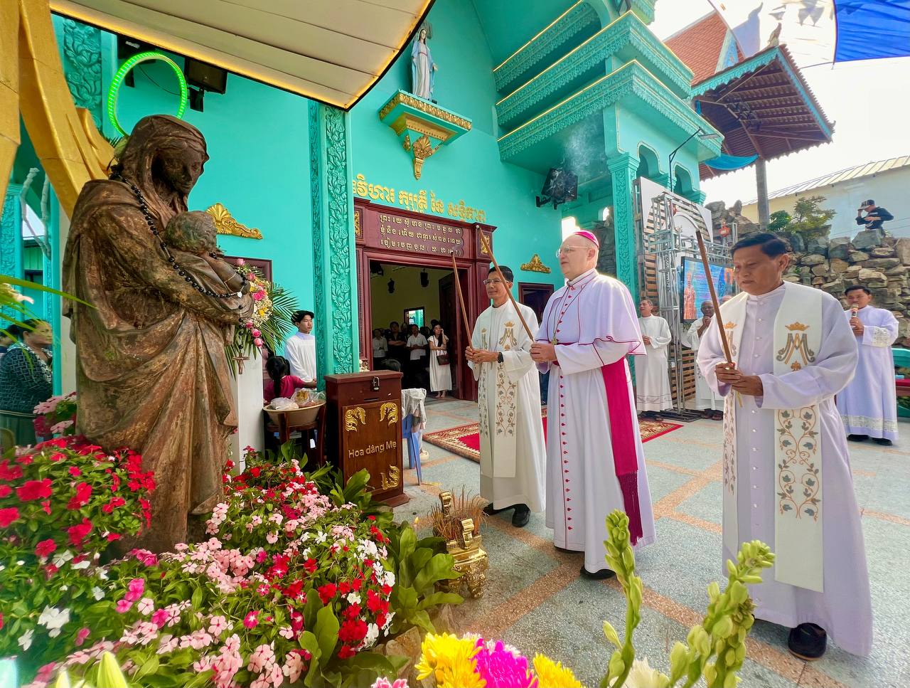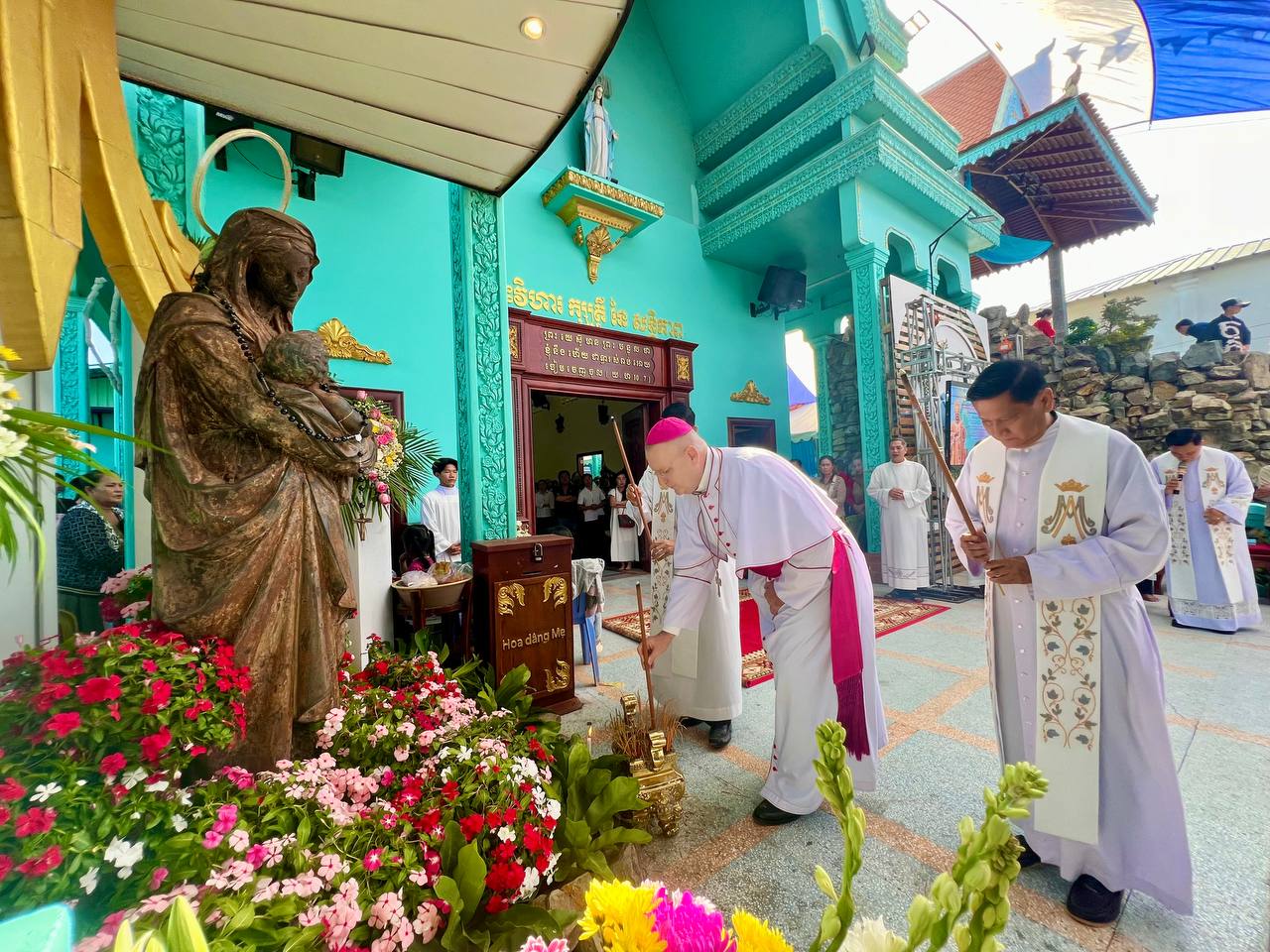 ពិធីដ៏ពិសិដ្ឋនេះ ត្រូវបានប្រារព្ធឡើងក្រោមអធិបតីភាពដ៏ខ្ពង់ខ្ពស់របស់លោកអភិបាល អូលីវីយ៉េ និងលោកអភិបាល សិលា សួន ហង្សលី ព្រមទាំងមានការចូលរួមពីសំណាក់លោកបូជាចារ្យ និងគ្រីស្តបរិស័ទយ៉ាងច្រើនកុះករ។