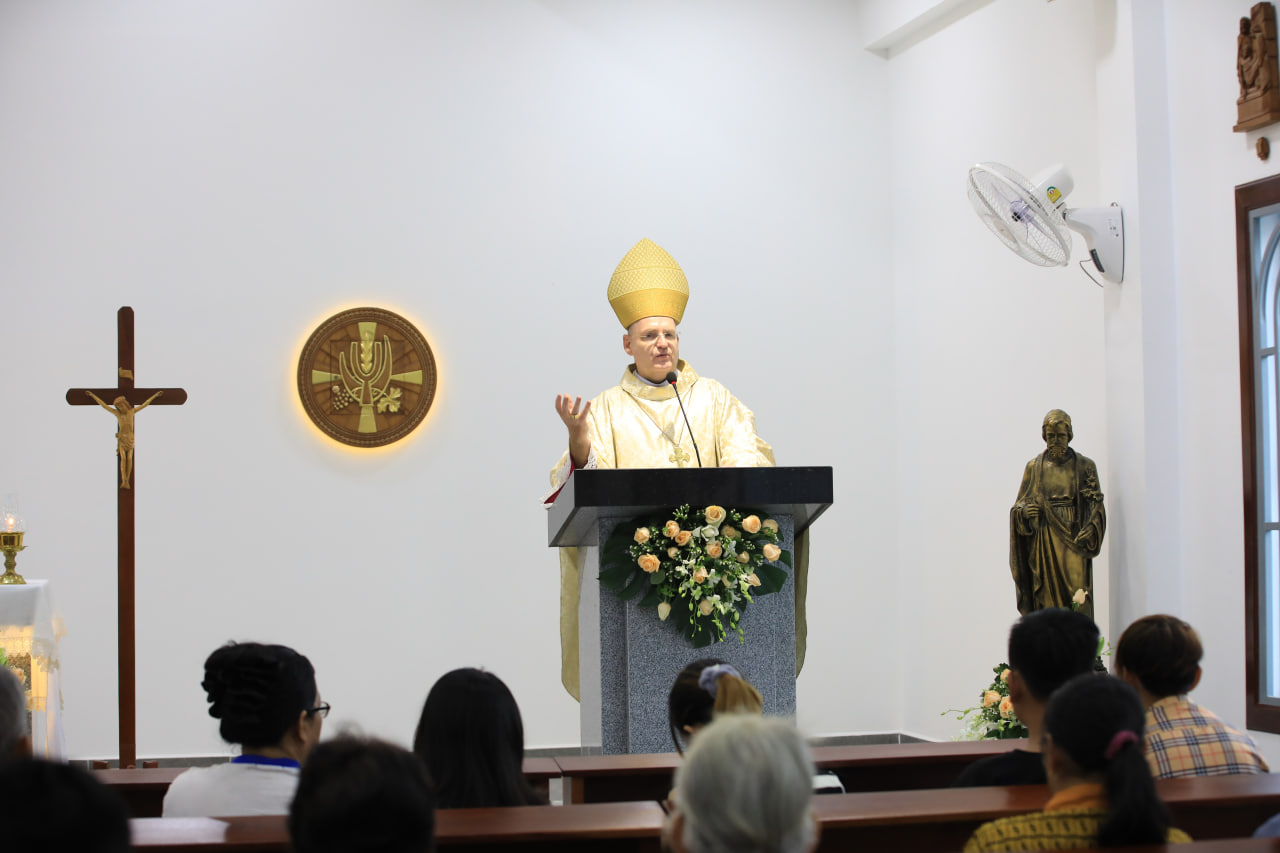 ក្នុងឱកាសនោះ លោកអភិបាលអូលីវីយ៉េ ក៏បានលើកទឹកចិត្តគ្រីស្តបរិស័ទនៅសែនសុខដែលធ្លាប់បានឆ្លងកាត់ទុក្ខលំបាកយ៉ាងច្រើនក្នុងជីវិត ឲ្យរក្សាសេចក្តីសង្ឃឹម និងរួមទុក្ខជាមួយព្រះយេស៊ូ។ ជាចុងក្រោយ លោកបានផ្តាំផ្ញើឲ្យបងប្អូនក្លាយជា៖ សាក្សីនៃសុខសន្តិភាព និងការសម្រុះសម្រួល, ចេះស្រឡាញ់ និងលើកលែងទោសឲ្យគ្នា, និងជាអ្នកផ្ញើជីវិតលើឧបការគុណរបស់ព្រះជាម្ចាស់ ដោយអធិដ្ឋានជានិច្ច។