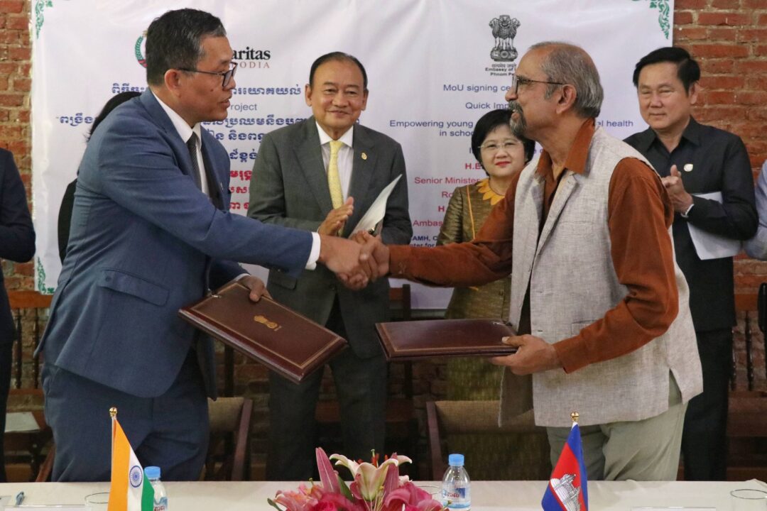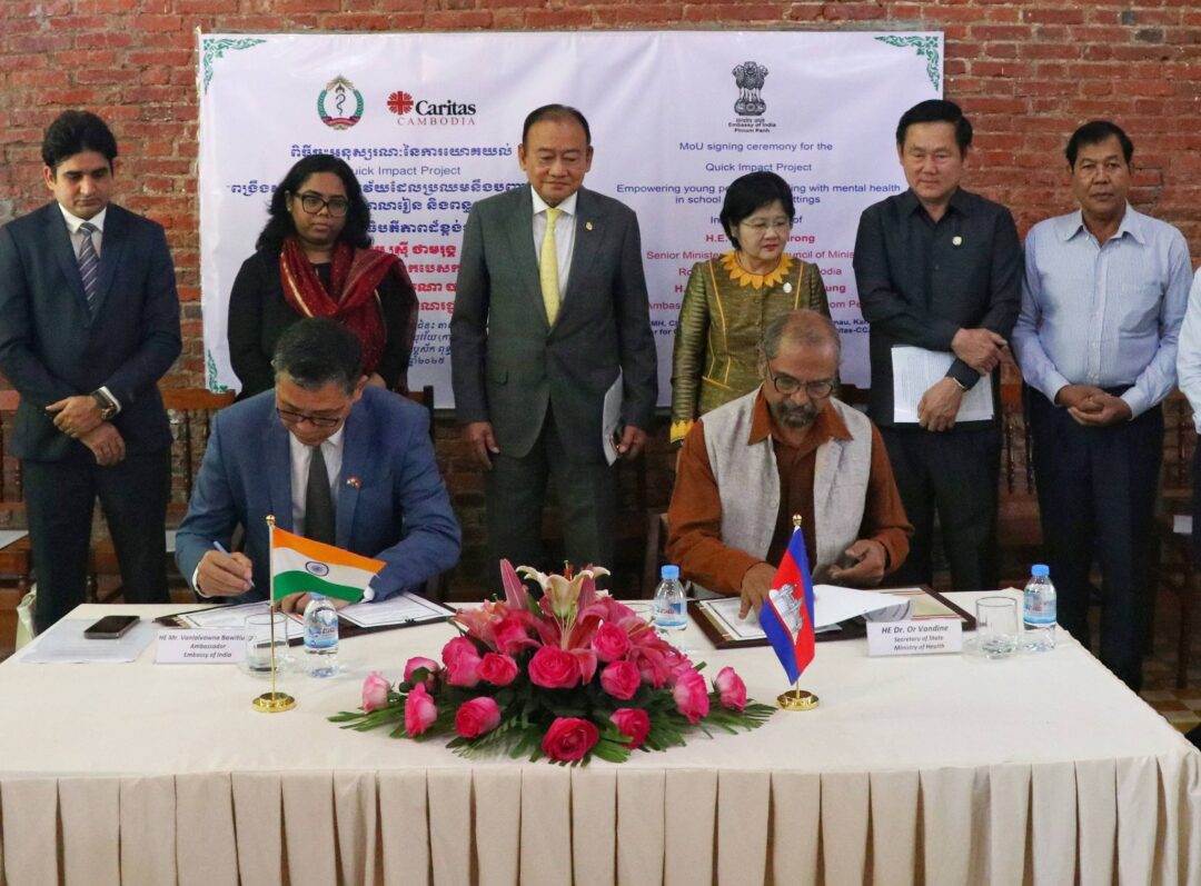 មជ្ឈមណ្ឌលសុខភាពផ្លូវចិត្តកុមារនិងយុវវ័យ (ការីតាស-CCAMH) និងស្ថានទូតឥណ្ឌាប្រចាំទីក្រុងភ្នំពេញ បាន ចុះហត្ថលេខាលើ អនុស្សារណៈនៃការយោគយល់ (MoU) ស្តីពីការអនុវត្ត គម្រោងផលប៉ះពាល់រហ័ស (QIP) នៅទីតាំងមជ្ឈមណ្ឌលផ្ទាល់ដែលស្ថិតនៅក្នុងក្រុងតាខ្មៅ ខេត្តកណ្តាល នាព្រឹកថ្ងៃទី ១ ខែធ្នូ ឆ្នាំ ២០២៥។ គម្រោងនេះមានគោលបំណង “ពង្រឹងសមត្ថភាពយុវវ័យដែលកំពុងប្រឈមនឹងបញ្ហាសុខភាពផ្លូវចិត្ត និងការសិក្សា នៅសាលារៀន និងពន្ធនាគារ តាមរយៈការកសាងសមត្ថភាពអ្នកជំនាញសុខភាពផ្លូវចិត្តនៅក្នុងប្រទេសកម្ពុជា ដោយប្រើវិធីសាស្រ្តដែលសមស្របនឹងវប្បធម៌”។ គម្រោងនេះ នឹងជួយពង្រឹងសមត្ថភាពអ្នកជំនាញអោយមានសមត្ថភាពបន្ថែមដើម្បីជួយដល់យុវវ័យនៅតាមសាលារៀន និងពន្ធនាគារ។ ពិធីចុះហត្ថលេខាលើអនុស្សារណៈនៃការយោគយល់ នេះត្រូវបានចុះហត្ថលេខាដោយលោកវេជ្ជបណ្ឌិត ប៊ូមីកុមារ ជេហ្គាណាថាន នាយកកម្មវិធី និងទីប្រឹក្សាឯកទេសចិត្តរោគកុមារ និង ឯកឧត្តម វាន់ឡាល់វៅន៉ា បាវិត្លុង ឯកអគ្គរដ្ឋទូតសាធារណរដ្ឋឥណ្ឌាប្រចាំនៅព្រះរាជាណាចក្រកម្ពុជា។ ពិធីនេះក៏មានការអញ្ជើញចូលរួមជាអធិបតីកិត្តិយសពី ឯកឧត្ដម ស្រ៊ី ថាមរុង្គ ទេសរដ្ឋមន្ត្រីទទួលបន្ទុកបេសកកម្មពិសេស រាជរដ្ឋភិបាលកម្ពុជា លោកជំទាវវេជ្ជបណ្ឌិត ឱ វណ្ណឌីន រដ្ឋលេខាធិការក្រសួងសុខាភិបាល ឯកឧត្តម គួយ ប៊ុនធឿន ប្រធានមន្ទីរសុខាភិបាលខេត្តកណ្ដាល លោក គឹម រតនា នាយកប្រិតបត្តិអង្គការការីតាសកម្ពុជា ព្រមទាំងគណៈគ្រប់គ្រង និងបុគ្គលិក អង្គការការីតាសកម្ពុជា រួមជាមួយក្រុមគ្រូពេទ្យនៃមជ្ឈមណ្ឌលសុខភាពផ្លូវចិត្តកុមារនិងយុវវ័យផងដែរ។ កិច្ចសហការនេះនឹងអាចលើកកម្ពស់សេវាសុខភាពផ្លូវចិត្តប្រកបដោយបរិយាបន្ន សម្រាប់យុវជន និងកុមារងាយរងគ្រោះនៅកម្ពុជា ដែលឆ្លុះបញ្ចាំងពីភាពជាដៃគូដ៏រឹងមាំរវាងប្រទេឥណ្ឌា និងប្រទេសកម្ពុជា។ ក្រោយពិធីចុះហត្ថលេខានេះ ប្រតិភូទាំងអស់បានធ្វើដំណើរទស្សនកិច្ចក្នុងបរិវេណមជ្ឈមណ្ឌលសុខភាពផ្លូវចិត្តកុមារនិងយុវវ័យរបស់ការីតាសកម្ពុជា៕
