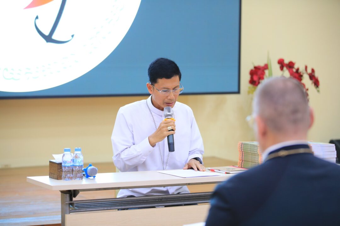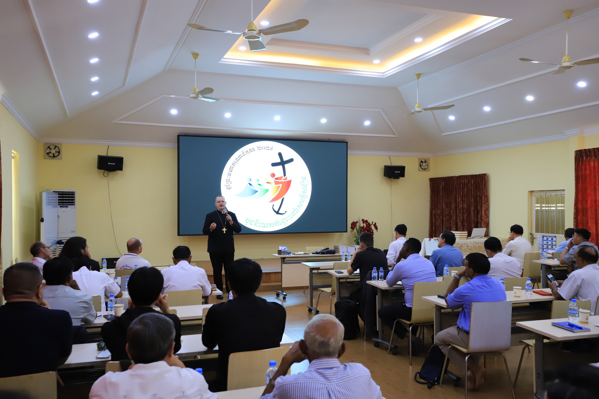 [ភ្នំពេញ]៖ នៅព្រឹកថ្ងៃទី ១៧ ខែធ្នូ ឆ្នាំ ២០២៥ នេះ បូជាចារ្យកាតូលិកដែលកំពុងបម្រើការងារក្នុងព្រះសហគមន៍កាតូលិកភូមិភាគភ្នំពេញ បានជួបជុំគ្នាក្នុងកិច្ចប្រជុំប្រចាំខែនៅមជ្ឈមណ្ឌលភូមិភាគភ្នំពេញ ក្រោមអធិបតីភាពដ៏ខ្ពង់ខ្ពស់របស់ លោកអភិបាល អូលីវីយ៉េ ជ្មីតហស្លេ អភិបាលព្រះសហគមន៍កាតូលិកភូមិភាគភ្នំពេញ និង លោកអភិបាល សិលា សួន ហង្សលី អភិបាលឧបត្ថម្ភកៈ។ នៅក្នុងឱកាសនោះ លោកអភិបាលអូលីវីយ៉េ បានបង្ហាញនូវការព្រួយបារម្ភយ៉ាងខ្លាំងចំពោះសភាពការណ៍វិវដ្ដចុងក្រោយនៅក្នុងប្រទេសកម្ពុជា ជាពិសេសជម្លោះប្រដាប់អាវុធដែលកំពុងកើតមាននៅតាមបណ្តោយព្រំដែនកម្ពុជា-ថៃ។ លោកអភិបាលបានរំលឹកដល់លោកបូជាចារ្យថា គ្មានអ្វីដែលស្ថិតស្ថេរឡើយនៅលើលោកនេះ សូម្បីតែសន្តិភាពដែលធ្លាប់បានព្រមព្រៀងគ្នាក៏អាចប្រែប្រួលបានដែរ។ លោកបានសង្កត់ធ្ងន់ថា ក្នុងគ្រាដែលច្រកព្រំដែនត្រូវបានបិទ និងបញ្ហាទិដ្ឋការមានភាពមិនច្បាស់លាស់ មានតែព្រះជាម្ចាស់មួយព្រះអង្គគត់ដែលស្ថិតស្ថេរ។ លោកបន្តថា ទោះបីជាពេលខ្លះយើងមានអារម្មណ៍អស់សង្ឃឹម ប៉ុន្តែក្នុងនាមយើងជាប្រជារាស្ត្រនៃសេចក្តីសង្ឃឹម និងនៅក្នុងឆ្នាំមហាករុណាទិគុណនេះ «យើងត្រូវតែរស់នៅជាមួយព្រះជាម្ចាស់ និងរក្សាសេចក្តីសង្ឃឹមឱ្យបានខ្ជាប់ខ្ជួន។» លោកអភិបាលអូលីវីយ៉េបានសង្កេតឃើញថា កម្ពុជាឯកោពីសហគមន៍អន្តរជាតិ។ ខណៈដែលពិភពលោកកំពុងតាមដានសង្គ្រាមនៅអ៊ុយក្រែន ឬហ្គាហ្សា ប៉ុន្តែជម្លោះនៅព្រំដែនកម្ពុជាហាក់ត្រូវបានសហគមន៍អន្តរជាតិមើលរំលង។ លោកបានកត់សម្គាល់ទៀតថា សំឡេងរបស់កម្ពុជានៅលើឆាកអន្តរជាតិមានកម្រិតតិចតួចណាស់ បើធៀបនឹងភាគីម្ខាងទៀត។ អ្វីដែលគួរឱ្យបារម្ភបំផុតនោះ គឺជម្លោះនេះ បណ្ដាលឱ្យប្រជាជនស្លូតត្រង់ក្លាយជាអ្នករងគ្រោះយ៉ាងធ្ងន់ធ្ងរ ទាំងបញ្ហាជម្រក ស្បៀងអាហារ និងចំណូល។ លោកបានបន្តថា ក្នុងនាមជាអ្នកដឹកនាំសាសនា យើងក៏ត្រូវឈឺចាប់ចំពោះការរើសអើងជាតិសាសន៍ និងការស្អប់ខ្ពើមដែលកើតចេញពីជម្លោះនេះ។ ដើម្បីឆ្លើយតបនឹងស្ថានភាពនេះ លោកអភិបាលអូលីវីយ៉េ បានដាក់ចេញនូវគោលការណ៍ណែនាំមួយចំនួនសម្រាប់ព្រះសហគមន៍។ លោកសូមអោយព្រះសហគមន៍នីមួយៗយកចិត្តទុកដាក់អធិដ្ឋាន ដោយថ្លែងថា «ប្រើប្រាស់កម្លាំងស្មារតីតាមរយៈការអធិស្ឋានដើម្បីសន្តិភាព»។ ក្នុងនោះលោកបានសំណូមពរ សូមអោយរៀបចំពិធីបុណ្យព្រះយេស៊ូប្រសូត ដោយកាត់បន្ថយកម្មវិធីកម្សាន្តសប្បាយ ហើយងាកមកប្រមូលថវិកាដើម្បីជួយសង្គ្រោះប្រជាជនដែលរងគ្រោះវិញ។ ម្យ៉ាងទៀត បន្តអប់រំកុមារអំពីសន្តិភាព និងបន្តចុះសួរសុខទុក្ខចាស់ជរា និងអ្នកជំងឺ។ មួយវិញទៀត លោកគង្វាលរូបនេះ ស្នើសុំអោយព្រះសហគមន៍ ចូលរួមសកម្មភាពជាក់ស្តែងតាមរយៈមូលន