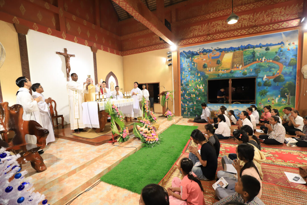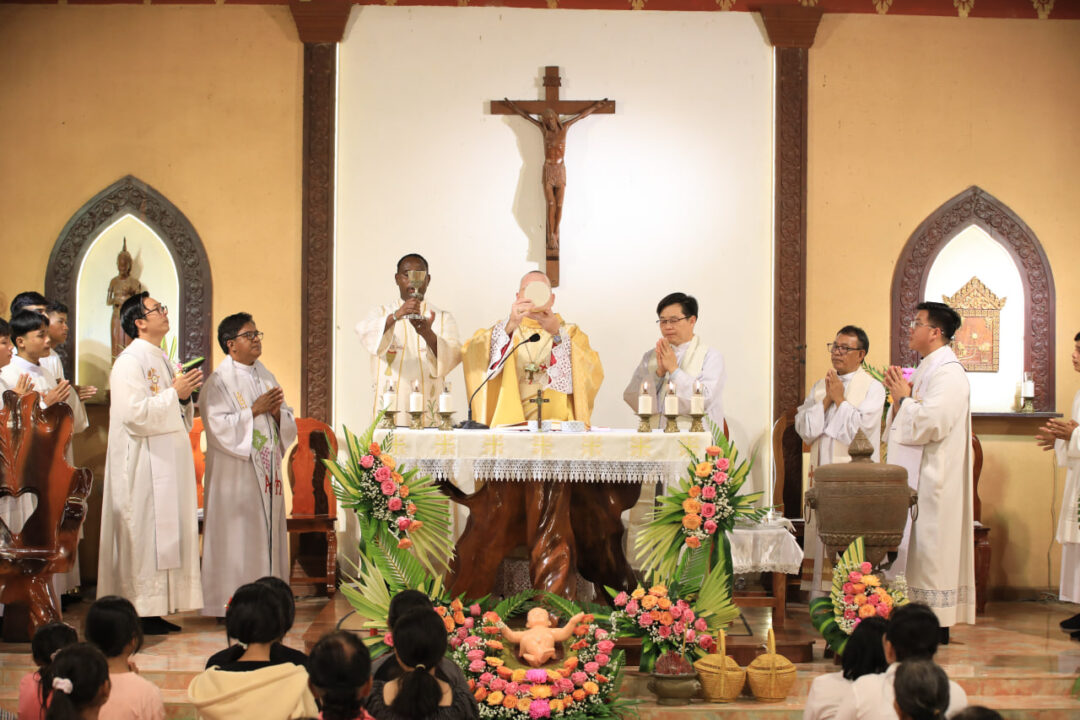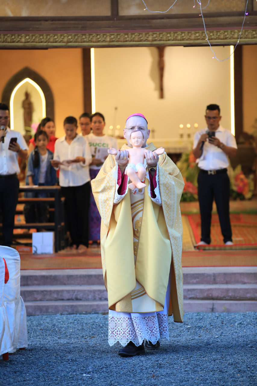 ព្រះសហគមន៍កាតូលិកភូមិភាគភ្នំពេញ រួមជាមួយបូជាចារ្យទទួលខុសត្រូវតំបន់តាកែវ កាលពីល្ងាចថ្ងៃទី២៣ ខែធ្នូ ឆ្នាំនេះ នៅក្នុងស្រុកត្រាំកក់ ខេត្តតាកែវ។ ក្នុងឱកាសនោះ ព្រះសហគមន៍បានកាត់បន្ថយកម្មវិធី កំសាន្តមួយចំនួន បង្វែរថវិកាដែលចំណាយលើកម្មវិធីទាំងនោះ ទៅជាកិច្ចការសង្គហៈ ជួយជនភៀសសឹកដែលកំពុងរងផលប៉ះពាល់ពីសង្គ្រាម ថៃ-កម្ពុជា។ លោកអភិបាលអូលីវីយ៉េ បានលើកឡើងថា ព្រះយេស៊ូយាងមក ដើម្បីនាំមកនូវសុខសន្តិភាពសម្រាប់មនុស្សលោក ហើយព្រះអង្គគឺជាព្រះអម្ចាស់នៃសន្តិភាព ដែលជាការអំពាវនាវឲ្យគ្រីស្តបរិស័ទទាំងអស់ ចូលរួមកសាង និងលើកស្ទួយសន្តិភាពនៅក្នុងសង្គម។ លោកបានបន្ថែមថា គ្រីស្តបរិស័ទមានភារកិច្ចសំខាន់មួយ គឺការអធិដ្ឋានសុំសន្តិភាព ឲ្យមកដល់ឆាប់រហ័ស។ គួរបញ្ជាក់ថា ក្នុងពិធីអបអរសាទរនេះ មិនមានកម្មវិធីកម្សាន្តធំៗឡើយ ដោយមានតែការសម្តែងរឿងព្រះយេស៊ូប្រសូត ដើម្បីរំលឹកនិងអបអរថ្ងៃបុណ្យព្រះយេស៊ូប្រសូតជាមនុស្សប៉ុណ្ណោះ៕