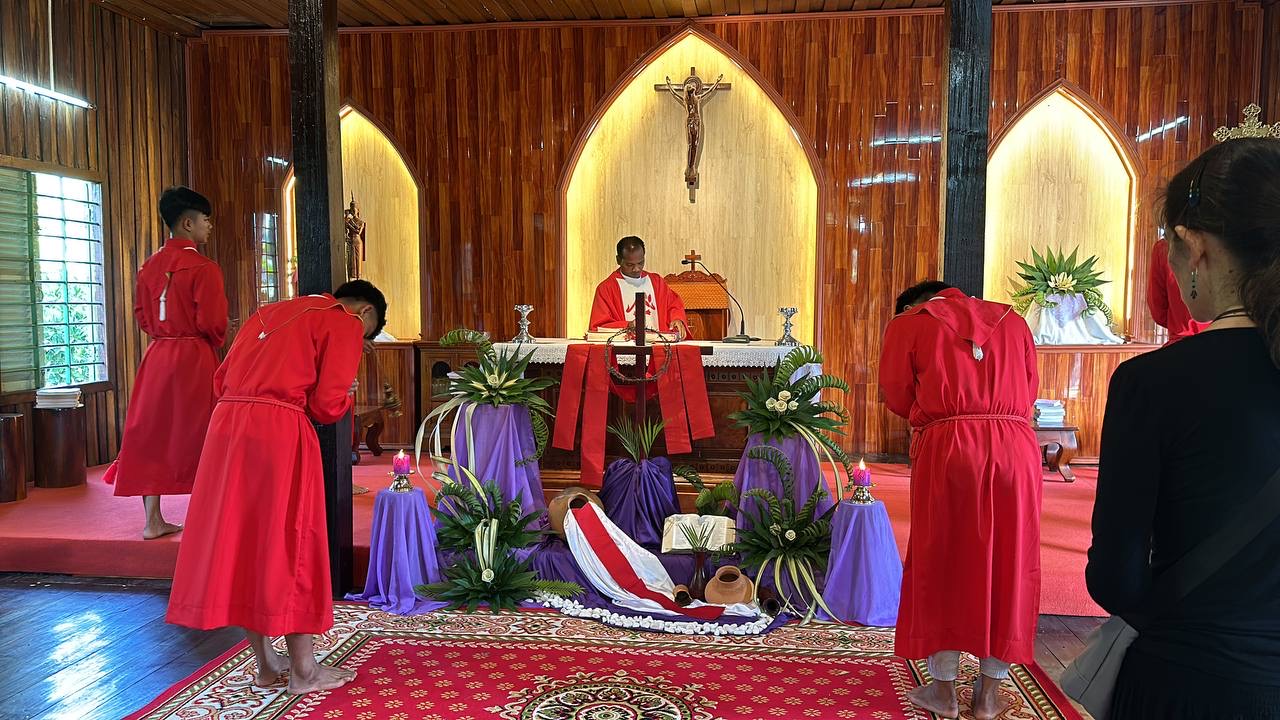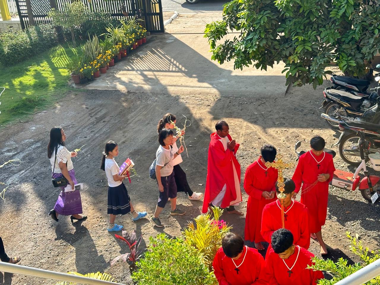 ព្រះសហគមន៍កាតូលិកសន្ដ អន់ដ្រេ កំពង់ចាមក្រុងបានរៀបចំថ្វាយអភិបូជាថ្ងៃអាទិត្យ បុណ្យហែស្លឹក លើកតម្កើងព្រះអម្ចាស់រងទុក្ខលំបាក ថ្ងៃអាទិត្យលើកតម្កើងព្រះយេស៊ូរងទុក្ខលំបាក ។