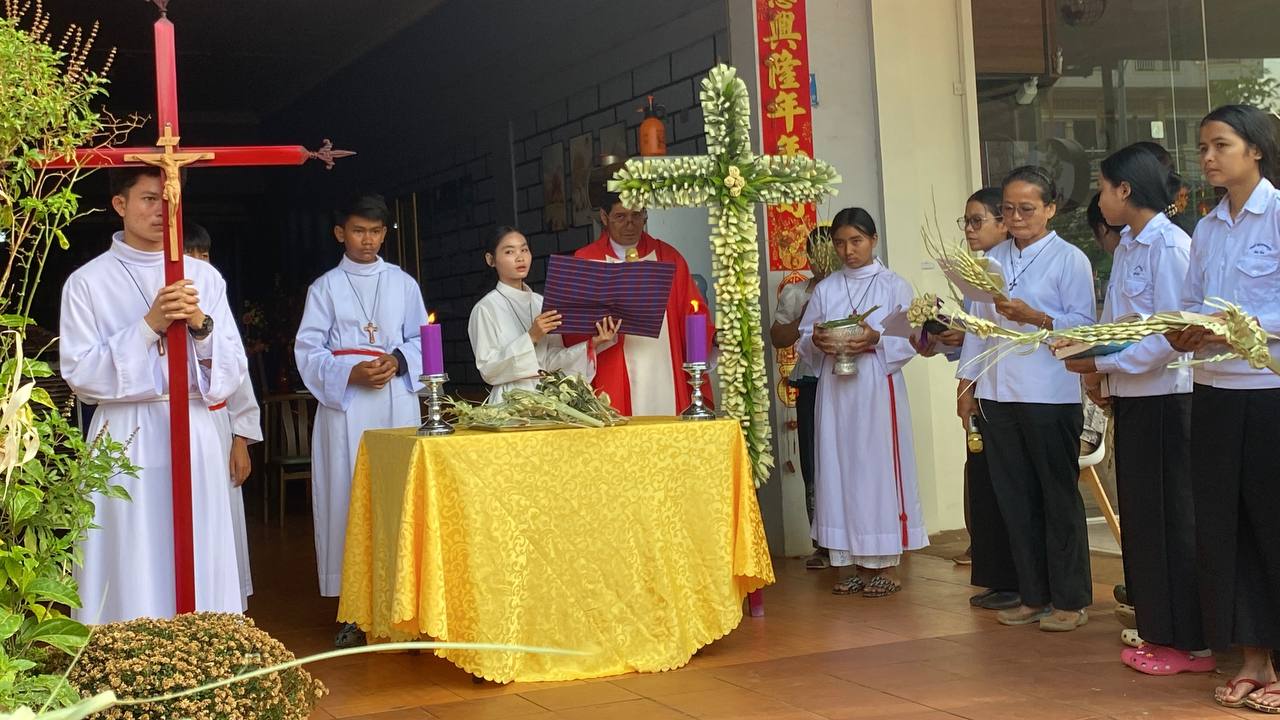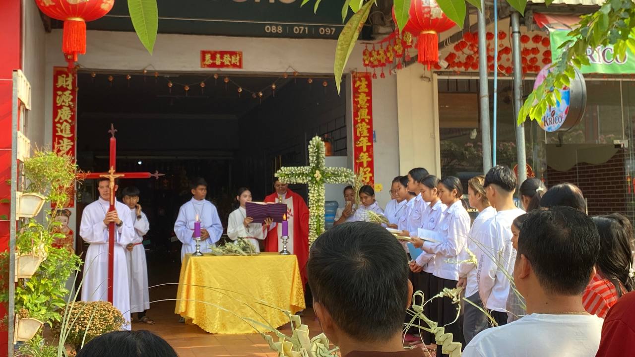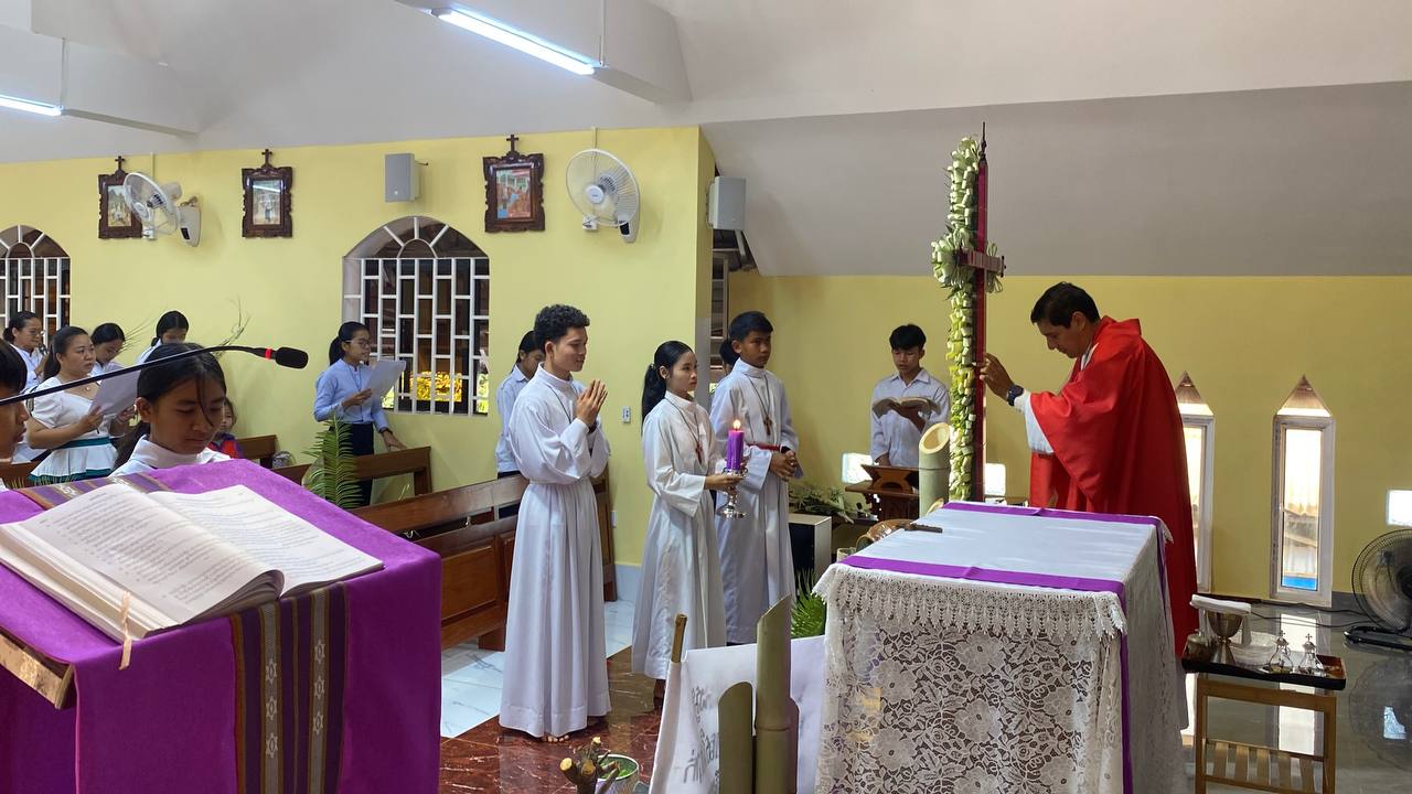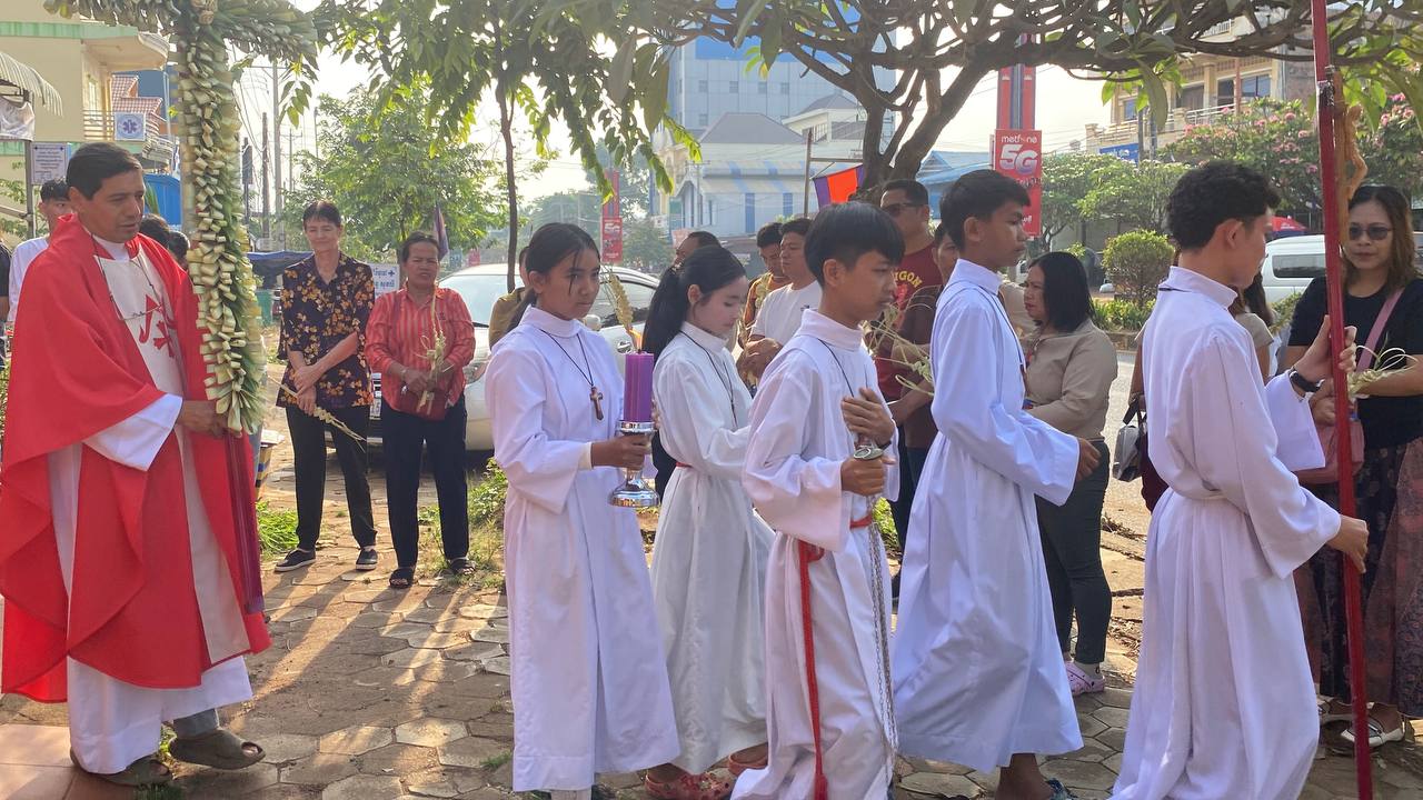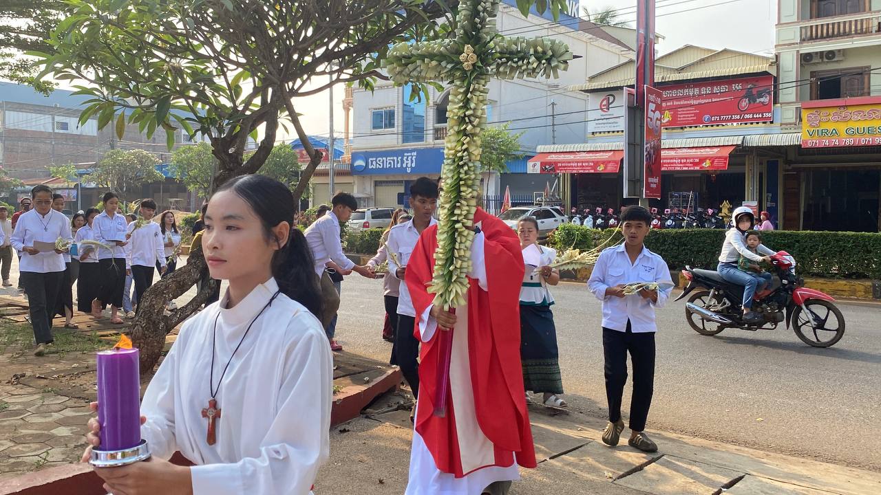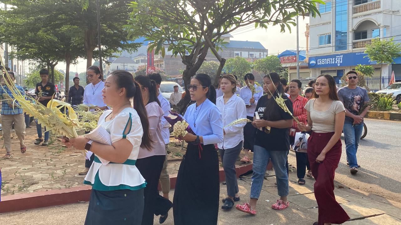 បុណ្យលើកតម្កើងព្រះយេស៊ូរងទុក្ខលំបាក (បុណ្យហែស្លឹក) នៅព្រះសហគមន៍កាតូលិក សន្ត យ៉ូសែប ក្រុងបានលុង ខេត្តរតនគិរី។ដោយលោកបូជាចារ្យ៖ អុីវ៉ាន់។