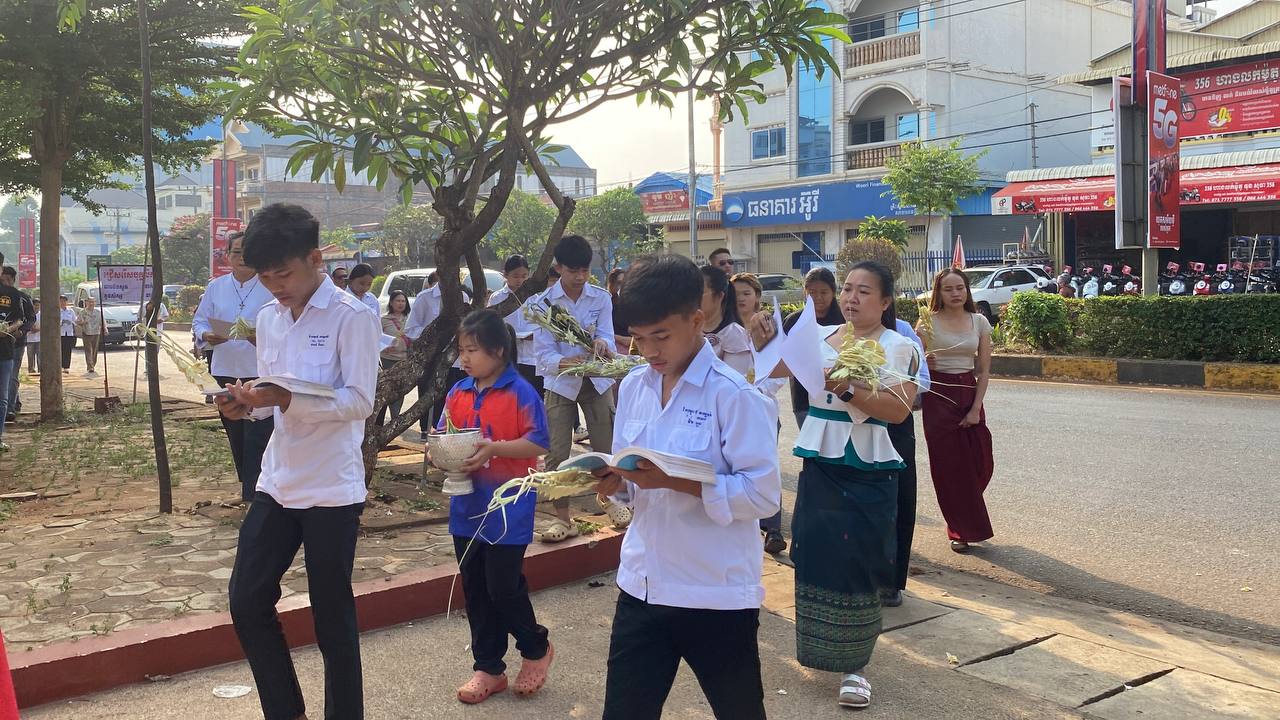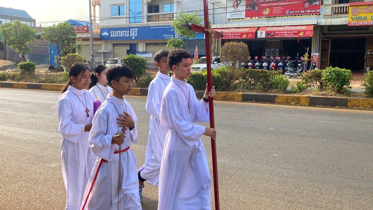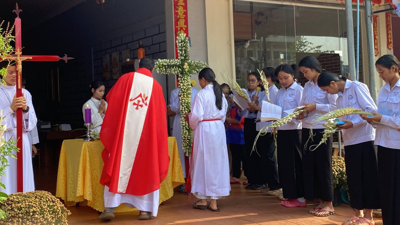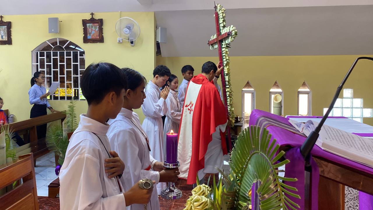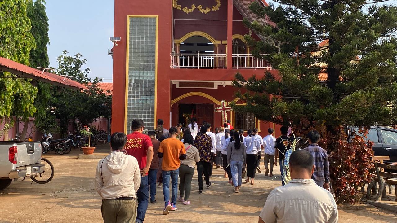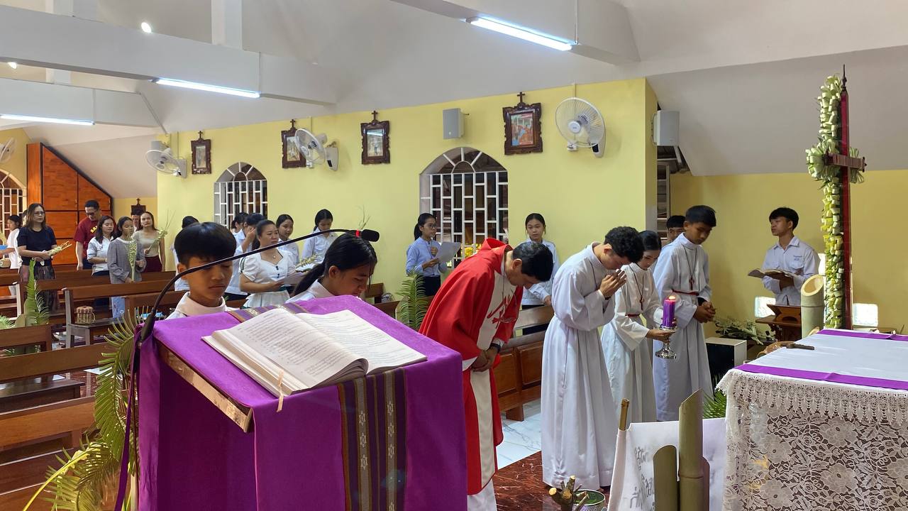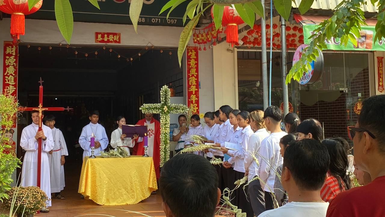 បុណ្យលើកតម្កើងព្រះយេស៊ូរងទុក្ខលំបាក (បុណ្យហែស្លឹក) នៅព្រះសហគមន៍កាតូលិក សន្ត យ៉ូសែប ក្រុងបានលុង ខេត្តរតនគិរី។ដោយលោកបូជាចារ្យ៖ អុីវ៉ាន់។