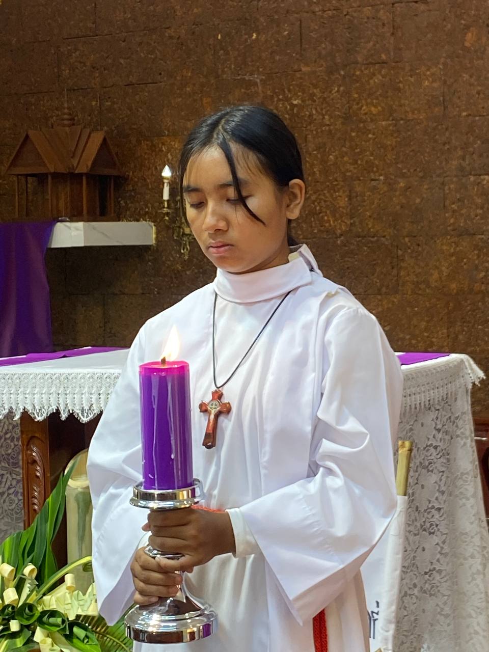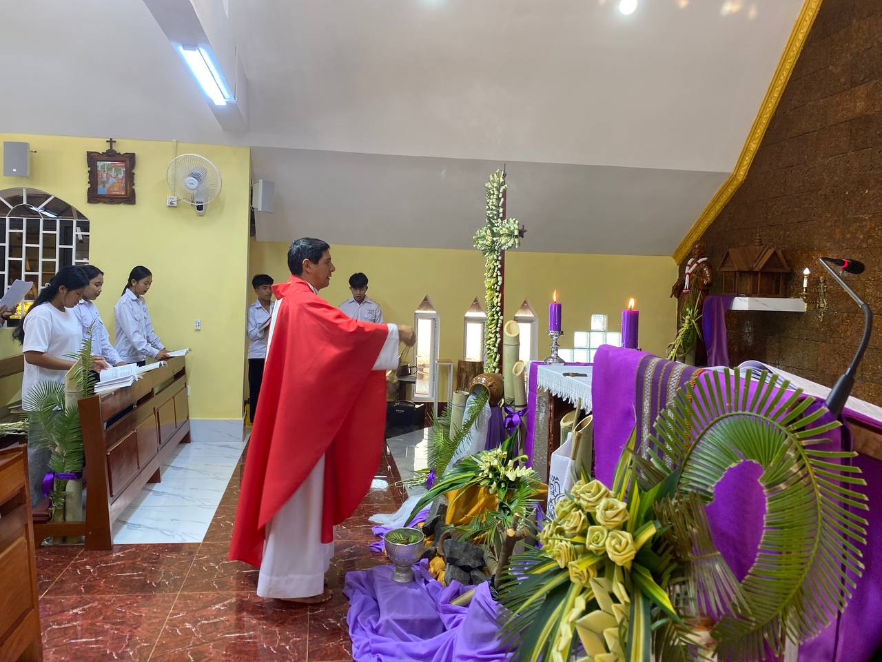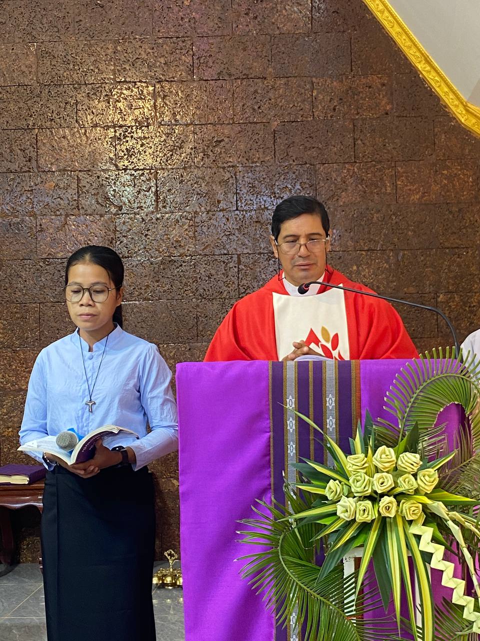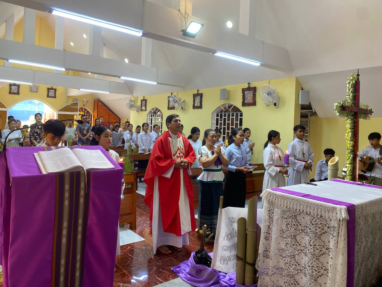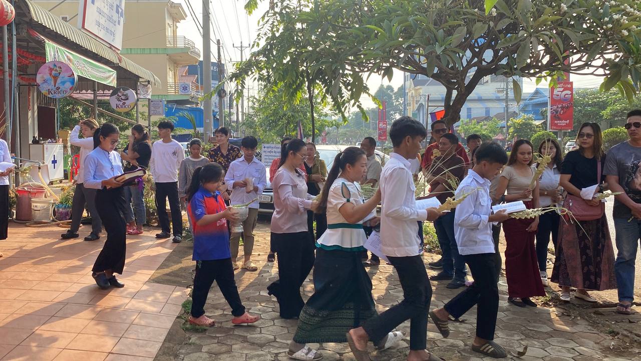 បុណ្យលើកតម្កើងព្រះយេស៊ូរងទុក្ខលំបាក (បុណ្យហែស្លឹក) នៅព្រះសហគមន៍កាតូលិក សន្ត យ៉ូសែប ក្រុងបានលុង ខេត្តរតនគិរី។ដោយលោកបូជាចារ្យ៖ អុីវ៉ាន់។