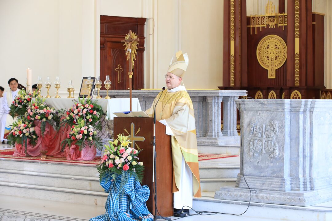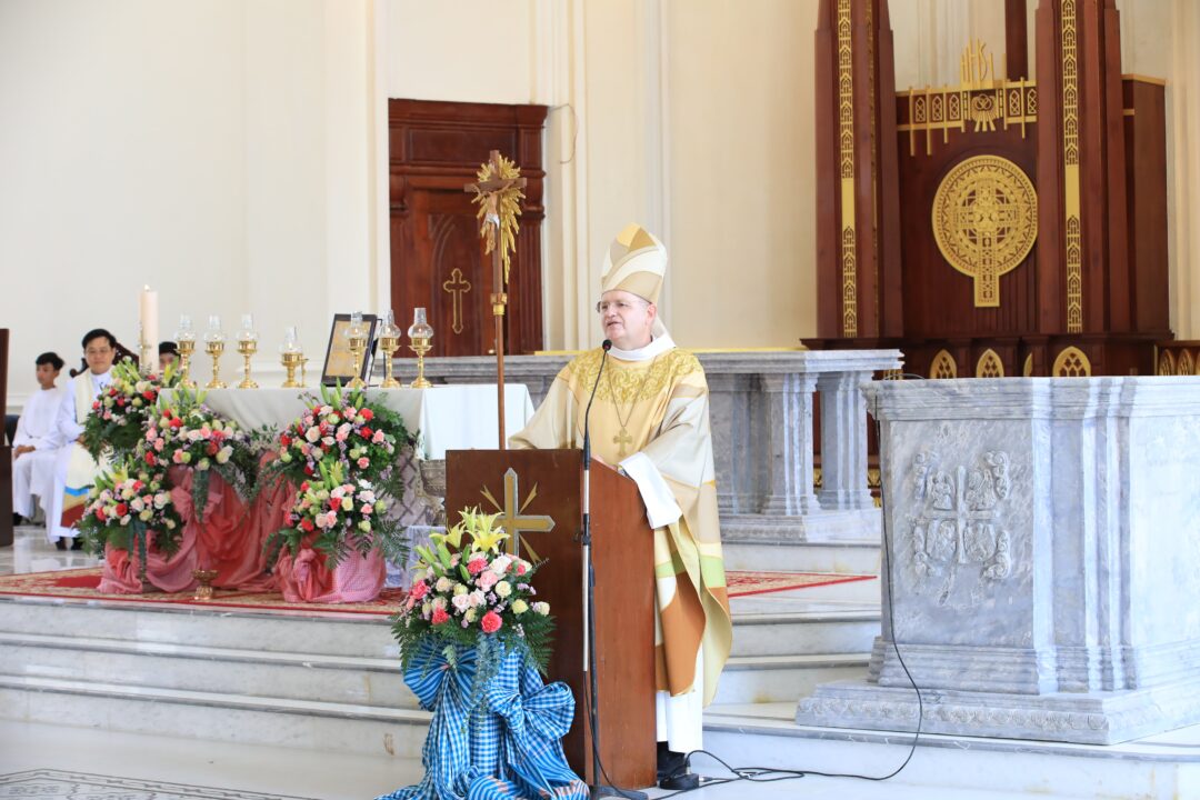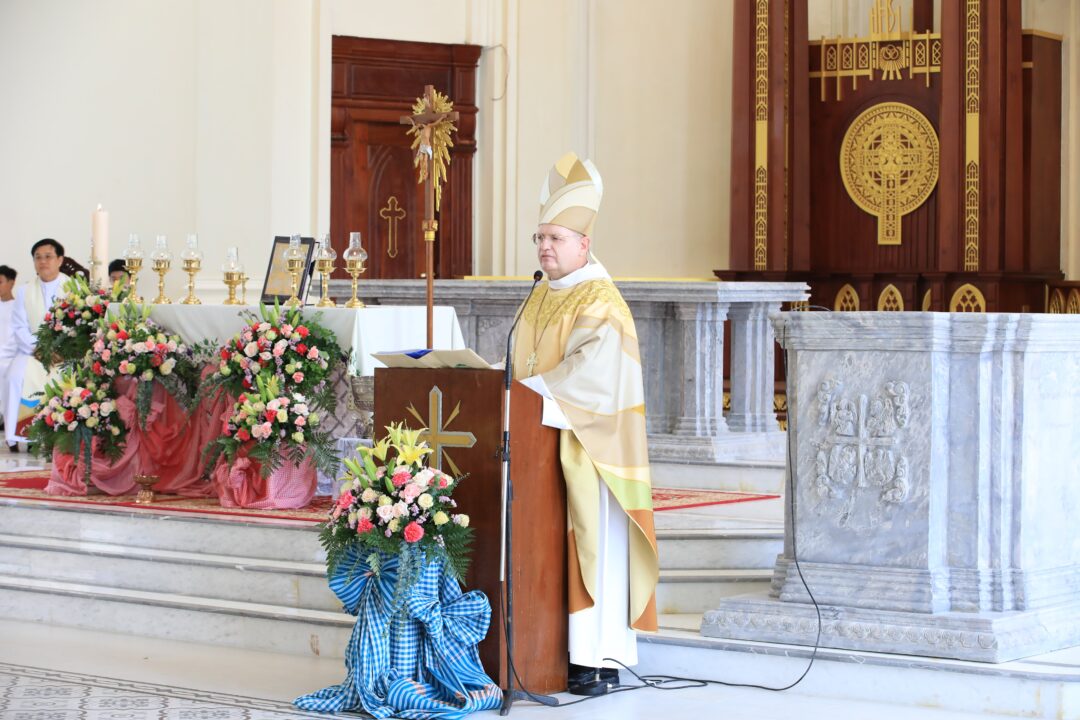 ក្នុងធម្មទេសនា លោកអភិបាលបានរំលឹកដល់លោកបូជាចារ្យ បព្វជិត បព្វជិតា និងគ្រីស្តបរិស័ទក្នុងភូមិភាគភ្នំពេញ ឱ្យយកចិត្តទុកដាក់ប្រារព្ធពិធីបុណ្យប្រពៃណីនេះ ឱ្យបានត្រឹមត្រូវតាមជំនឿរបស់យើងជាគ្រីស្តបរិស័ទ។ ព្រមទាំងលើកទឹកចិត្តបងប្អូនឱ្យខិតខំចូលរួមអធិដ្ឋានក្នុងព្រះវិហារ ដើម្បីទទួលព្រះពរពីព្រះជាម្ចាស់ក្នុងឱកាសឆ្នាំថ្មីនេះ។ ក្នុងឱកាសនោះដែរ លោកអភិបាលអូលីវីយ៉េ ក៏បានដាស់តឿនឱ្យបងប្អូនយកចិត្តទុកដាក់ធ្វើជាអ្នកកសាងសន្តិភាពជារៀងរាល់ថ្ងៃ តាមមាគ៌ានៃសុភមង្គលរបស់ព្រះយេស៊ូ៕